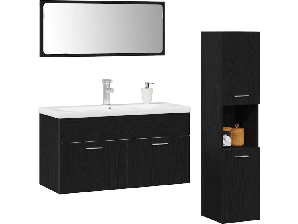 Sada koupelnového nábytku 4 pcs Černý dub kompozitní dřevo [3334354]