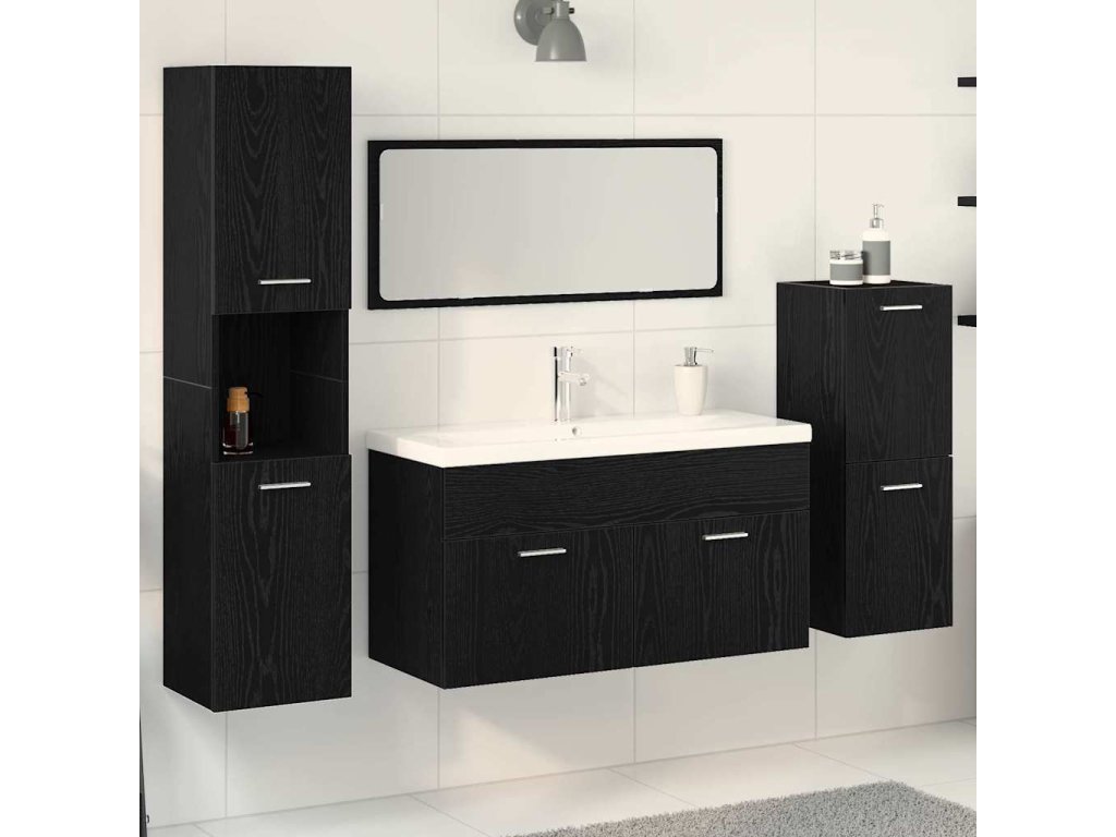 Sada koupelnového nábytku 4 pcs Černý dub kompozitní dřevo [3334418]