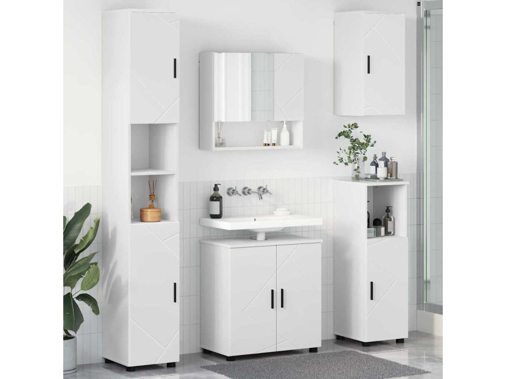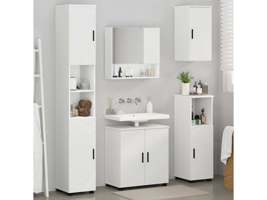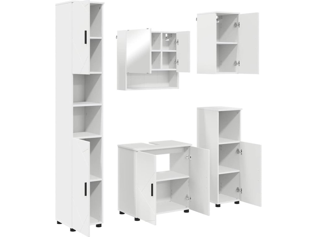 Sada koupelnového nábytku 5 pcs Bílá Kompozitní dřevo & kov [3392983]