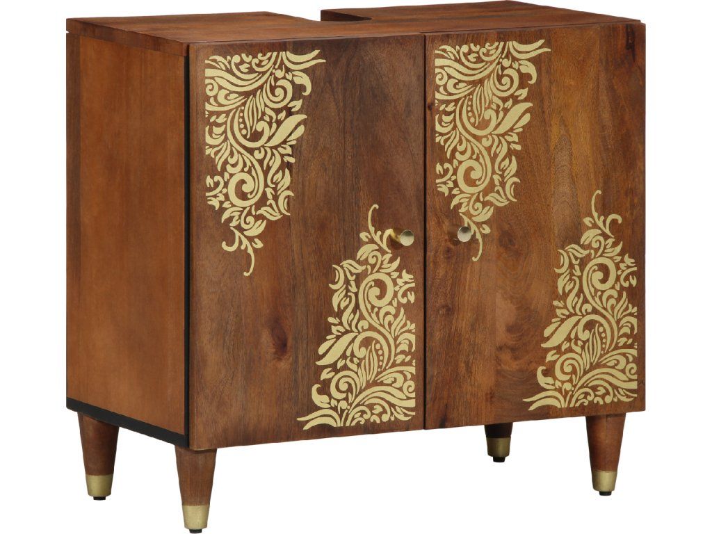 Tato rustikální koupelnová skříň spojuje styl s funkčností a přináší přírodní krásu přímo domů. Pečlivě vyrobená z masivního mangového dřeva je silná a vyznačuje se unikátní texturou. Elegantní zlatý sítotisk na dvířkách skříňky dodává umělecký šmrnc a stává se středobodem nejen ve rustikálních koupelnách. Je navržena tak, aby splnila vaše potřeby úložného prostoru a zároveň ladila s vaším dekorem.