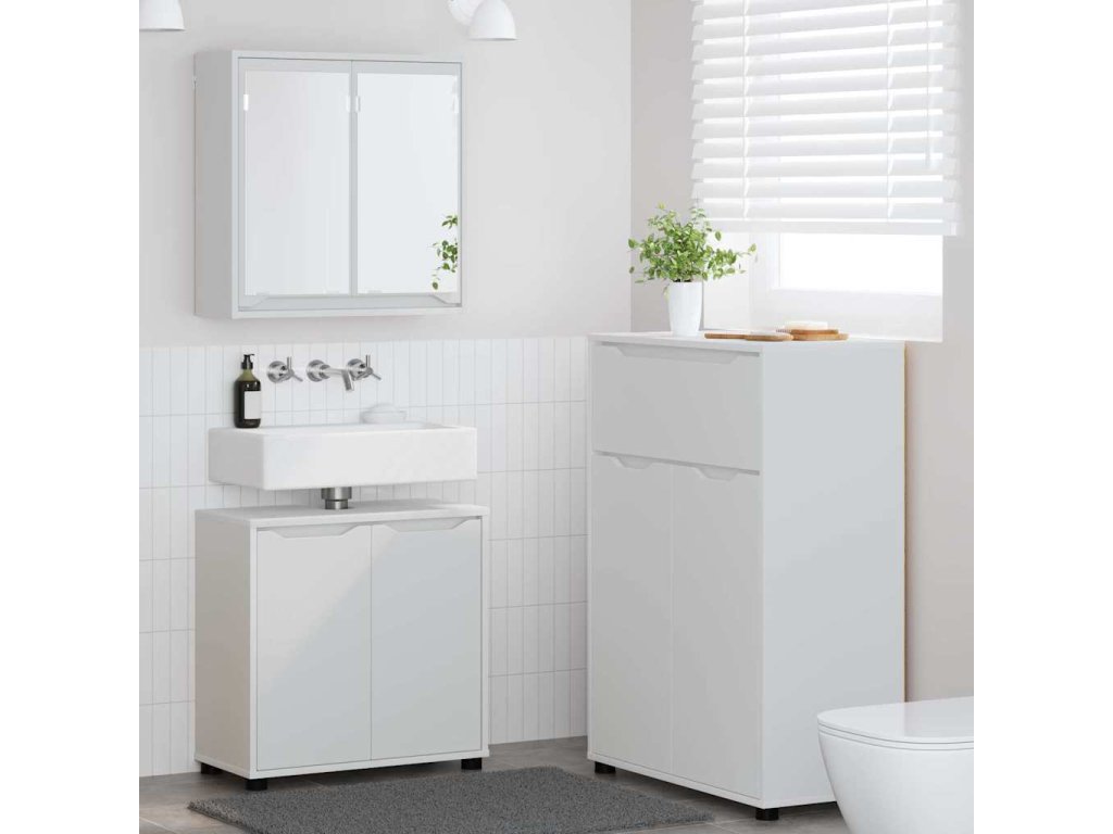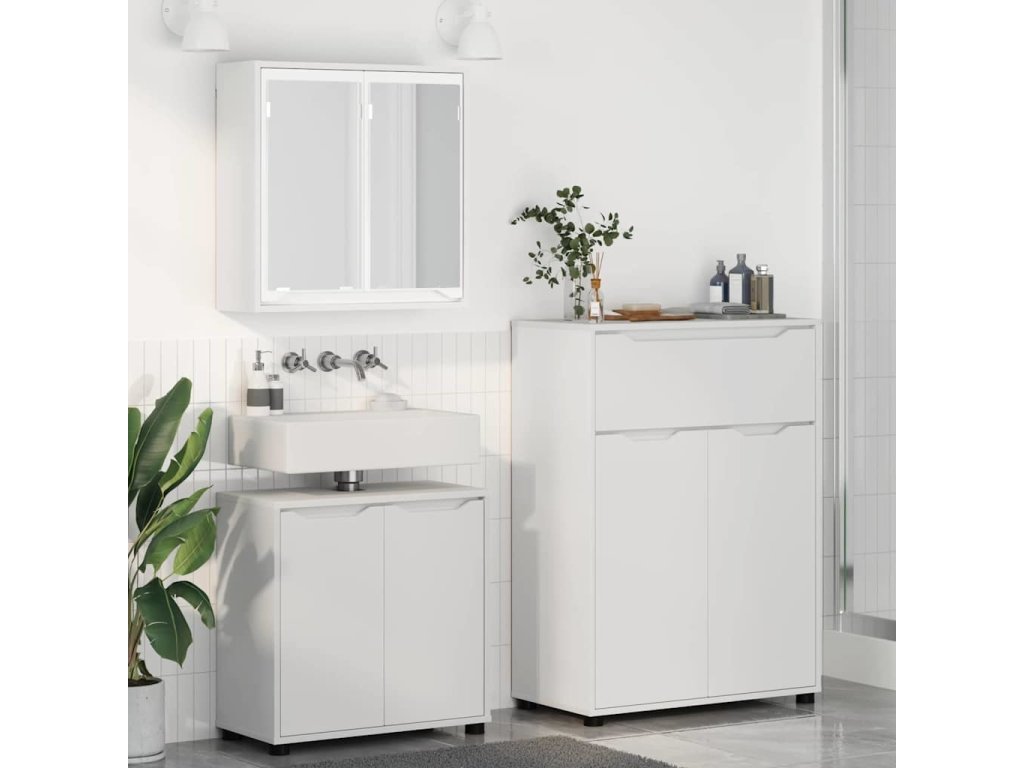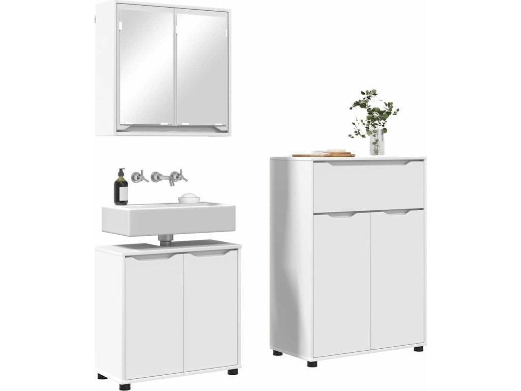 Sada koupelnového nábytku s policí 3 pcs Bílá kompozitní dřevo [3403850]