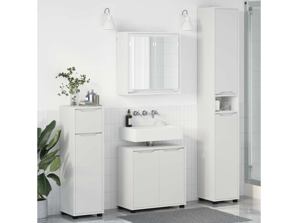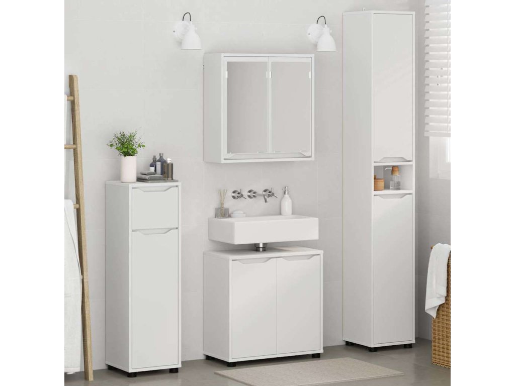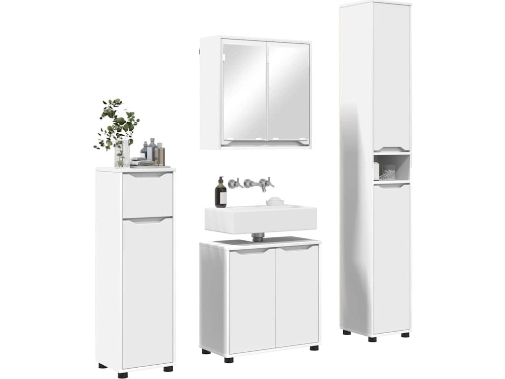 Sada koupelnového nábytku s policí 4 pcs Bílá kompozitní dřevo [3403840]