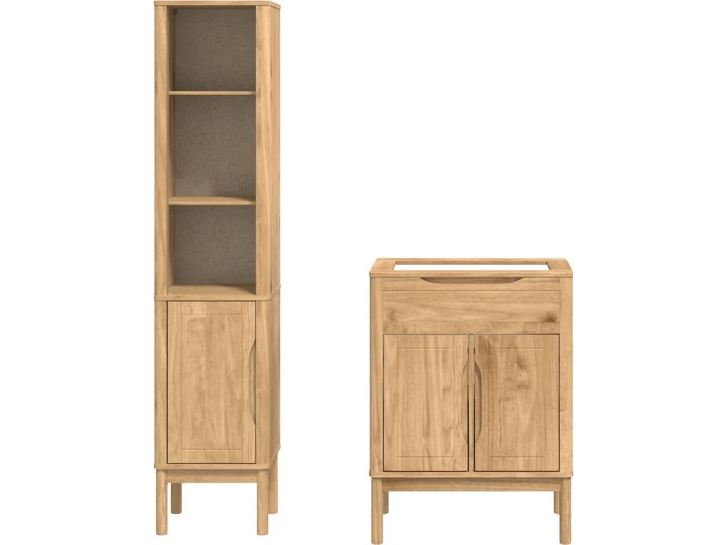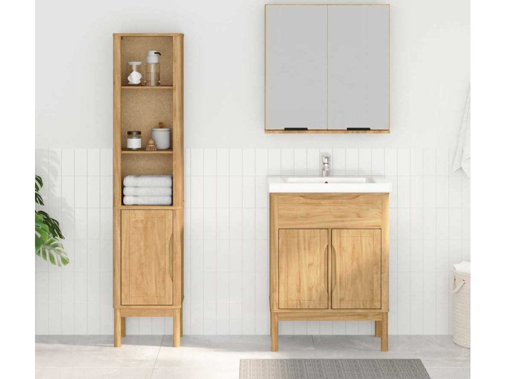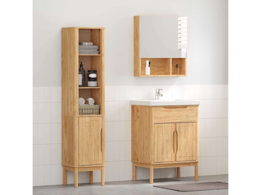 - Masivní borová konstrukce Tento koupelnový nábytek je udělaný z kvalitního borového dřeva. Každý detail - ať už rám, úchyt nebo zadní strana - je pečlivě zpracován, aby zajistil jeho pevnost. Materiál dodává vaší koupelně přírodní vzhled.