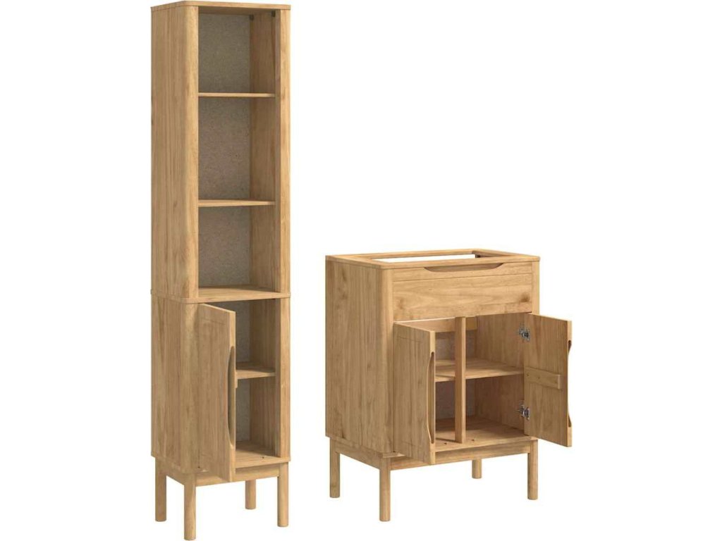 Tahle moderní koupelnová nábytková sada dodává každé koupelně šmrnc a skvělý styl. Je navržená tak, aby se hodila na každodenní využití a nabízela jak design, tak funkčnost pro organizovanou atmosféru. S elegantním obdélníkovým tvarem a moderním povrchem snadno zapadne do vašeho moderního interiéru. Trvanlivá konstrukce z masivního borového dřeva zaručuje dlouhou životnost. Skvělá pro ty, co mají rádi jednoduchost a efektivní úložné řešení, tahle sada ztělesňuje minimalistický styl, který si přizpůsobíte podle sebe. Pečlivě navržená, tahle sada vás zve na klidnou a uspořádanou cestu každý den.