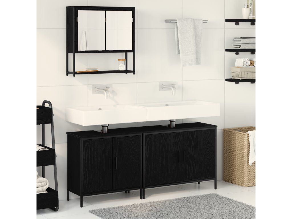 Sada koupelnového nábytku s policí 3 pcs Černá Kompozitní dřevo [3334366]