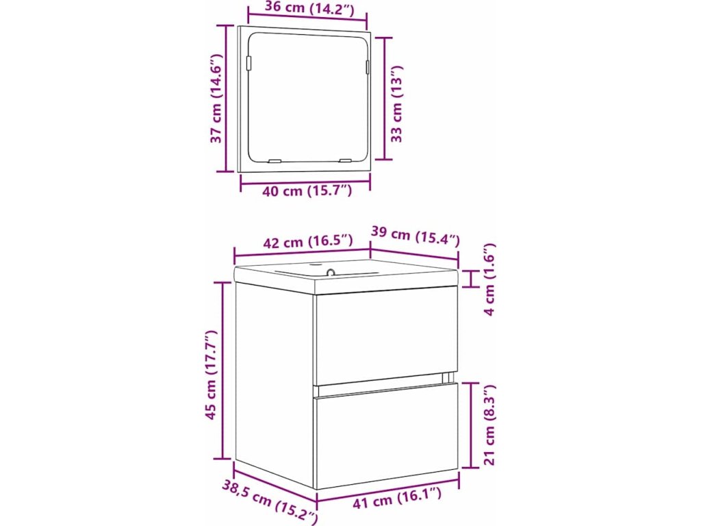 Tento moderní koupelnový set je perfektní pro každou koupelnu, spojuje funkčnost s minimalistickým designem. S čistými liniemi a elegantním vzhledem představuje moderní styl, ideální pro současné interiéry. Díky nástěnné konstrukci šetří prostor a vytváří uklizenou atmosféru. Set obsahuje praktické zrcadlo a skříňku na umyvadlo, které zvyšují jak užitečnost, tak styl. Skvělá volba pro ty, co chtějí svou koupelnu povýšit na novou úroveň.