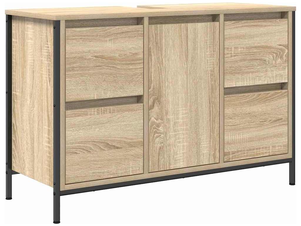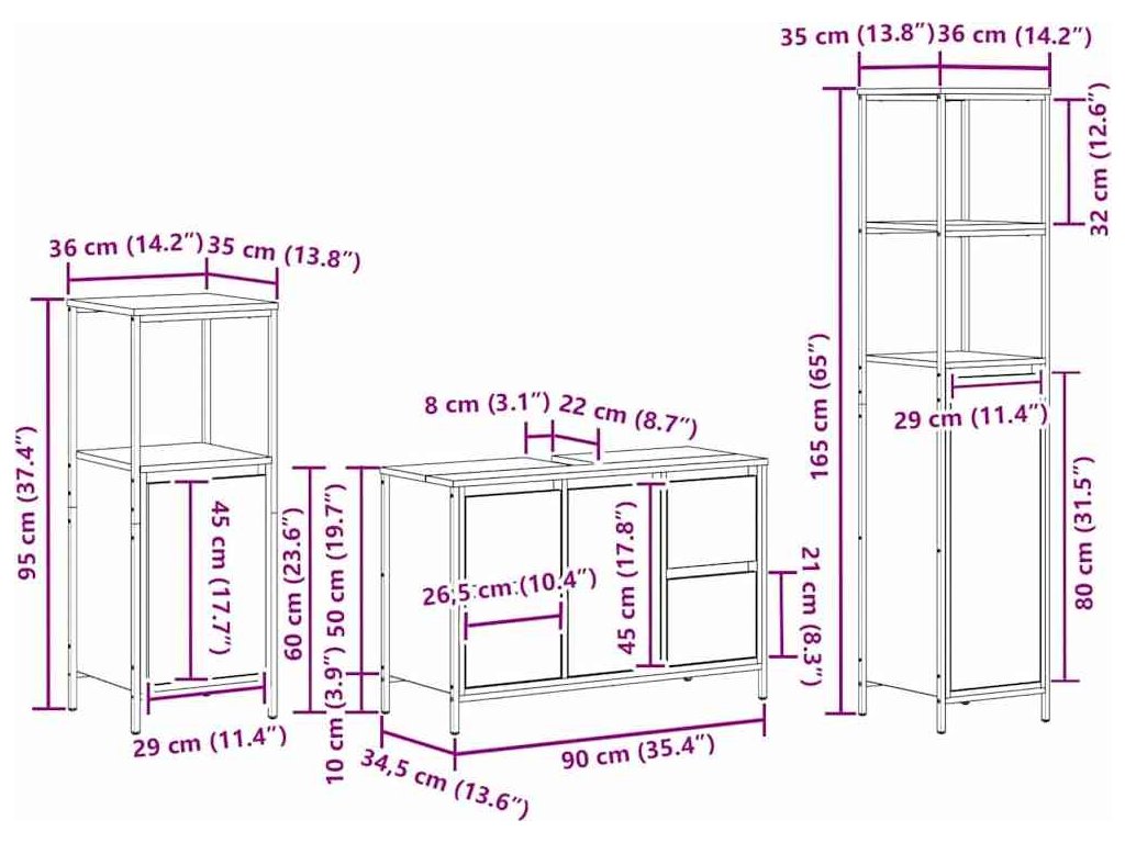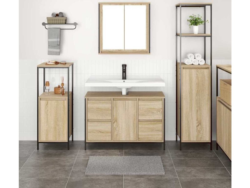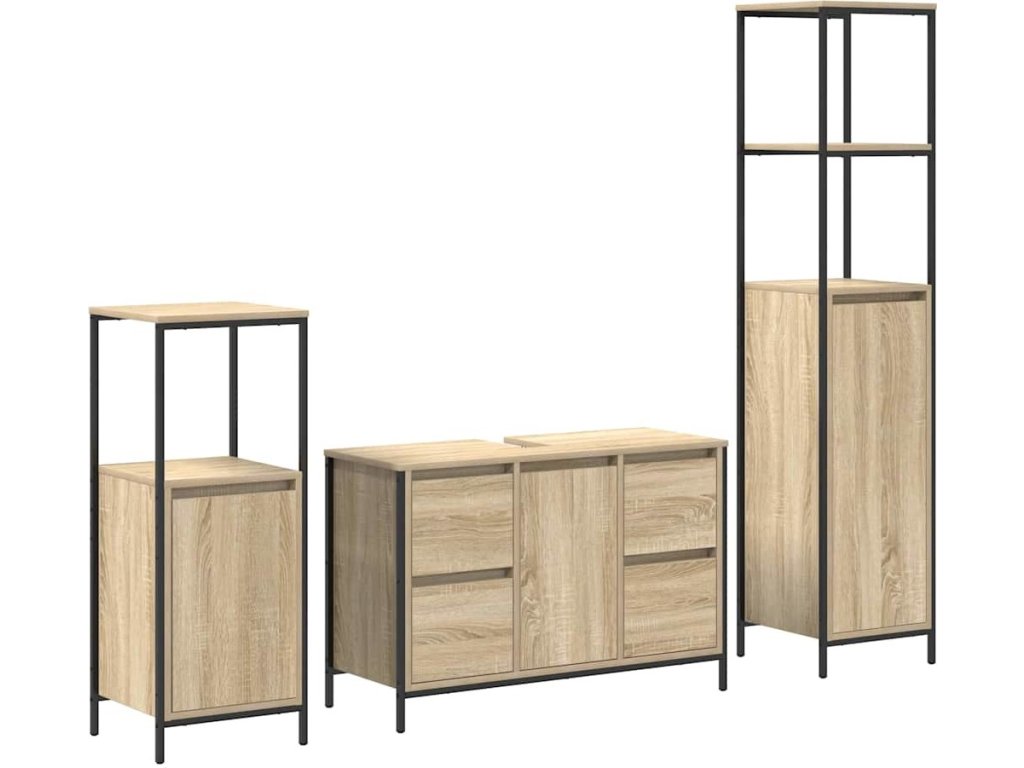 Sada koupelnového nábytku se zásuvkou 3 pcs Sonoma dub a černá [3328380]