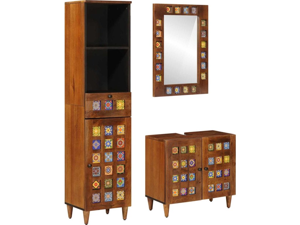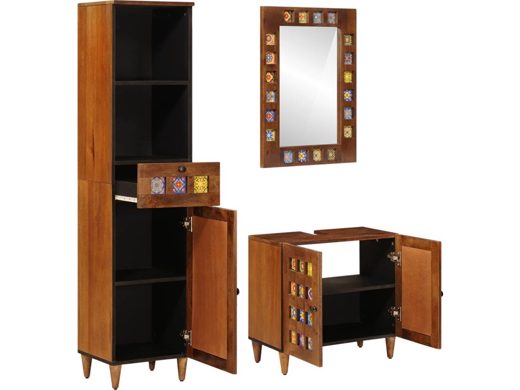 - Robustní materiály: Vyrobeno z masivního mangového dřeva, koupelnová sada je pevná a stylová. Textura dřeva dodává příjemné teplo a jeho pevnost zajišťuje dlouhou životnost, takže set ti bude sloužit dlouho.