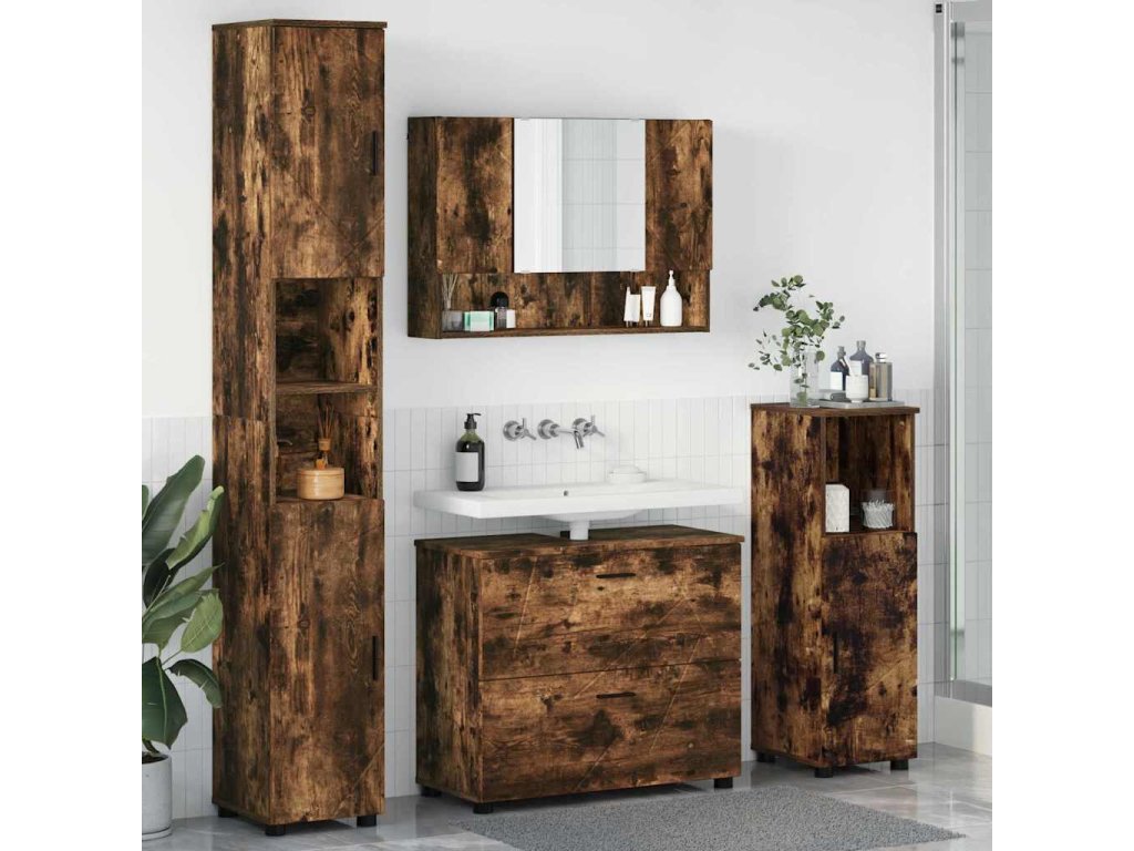 Sada koupelnového nábytku se zásuvkou 4 pcs Kouřový dub [3393048]