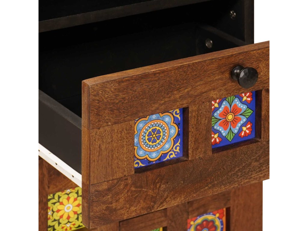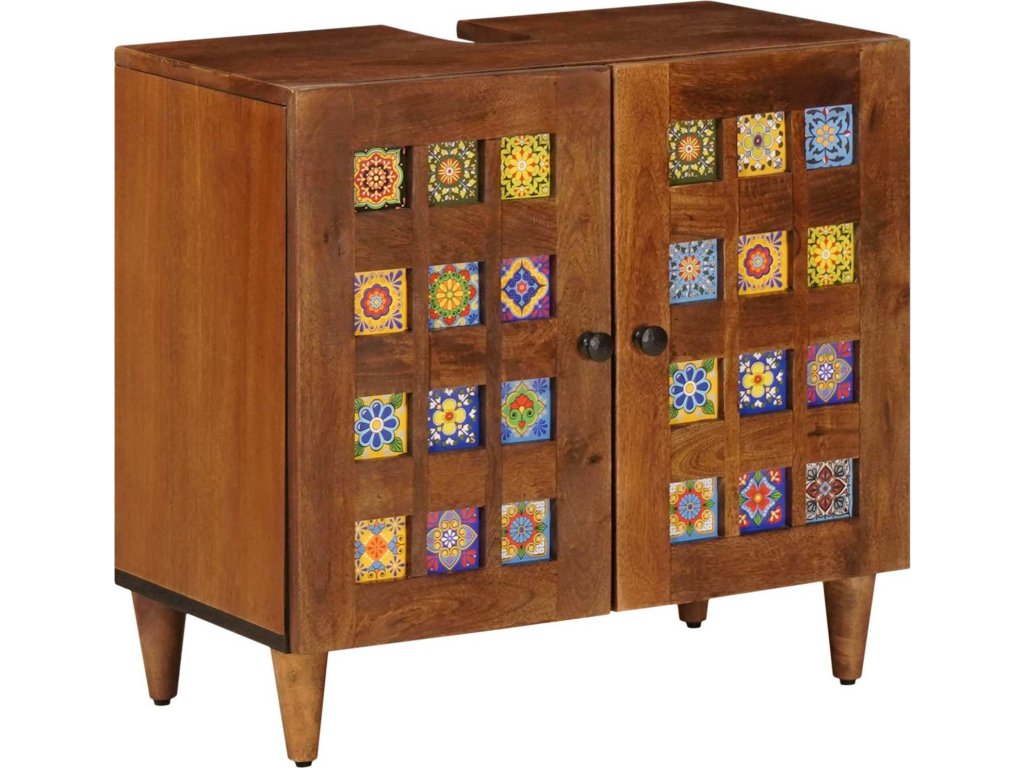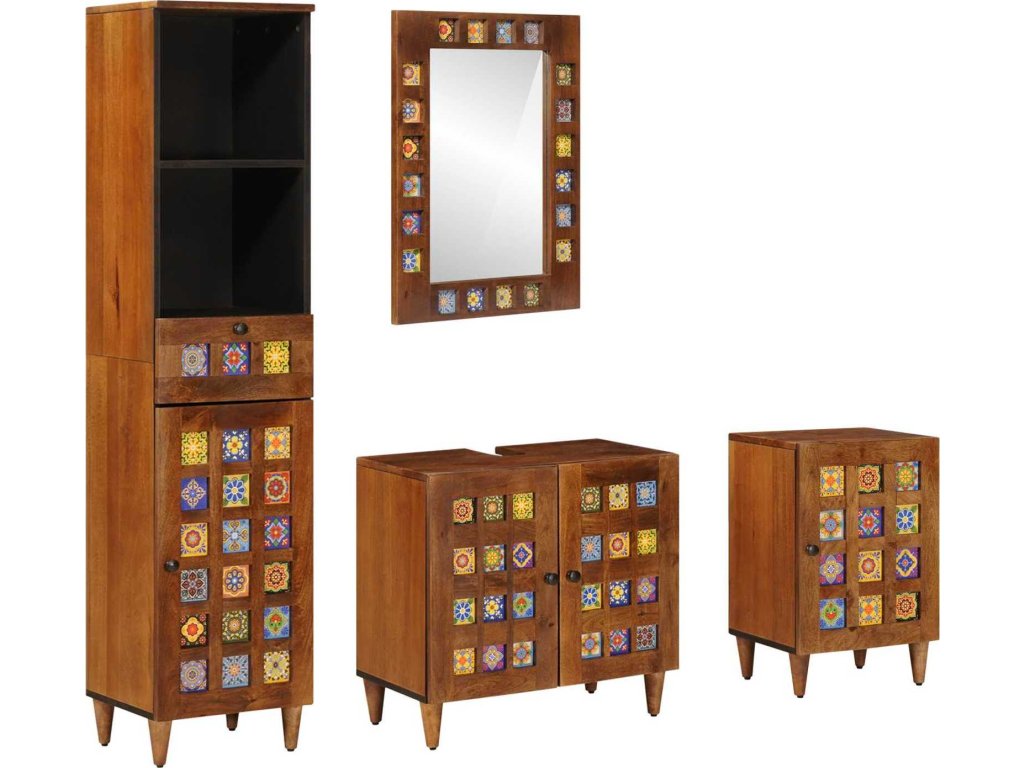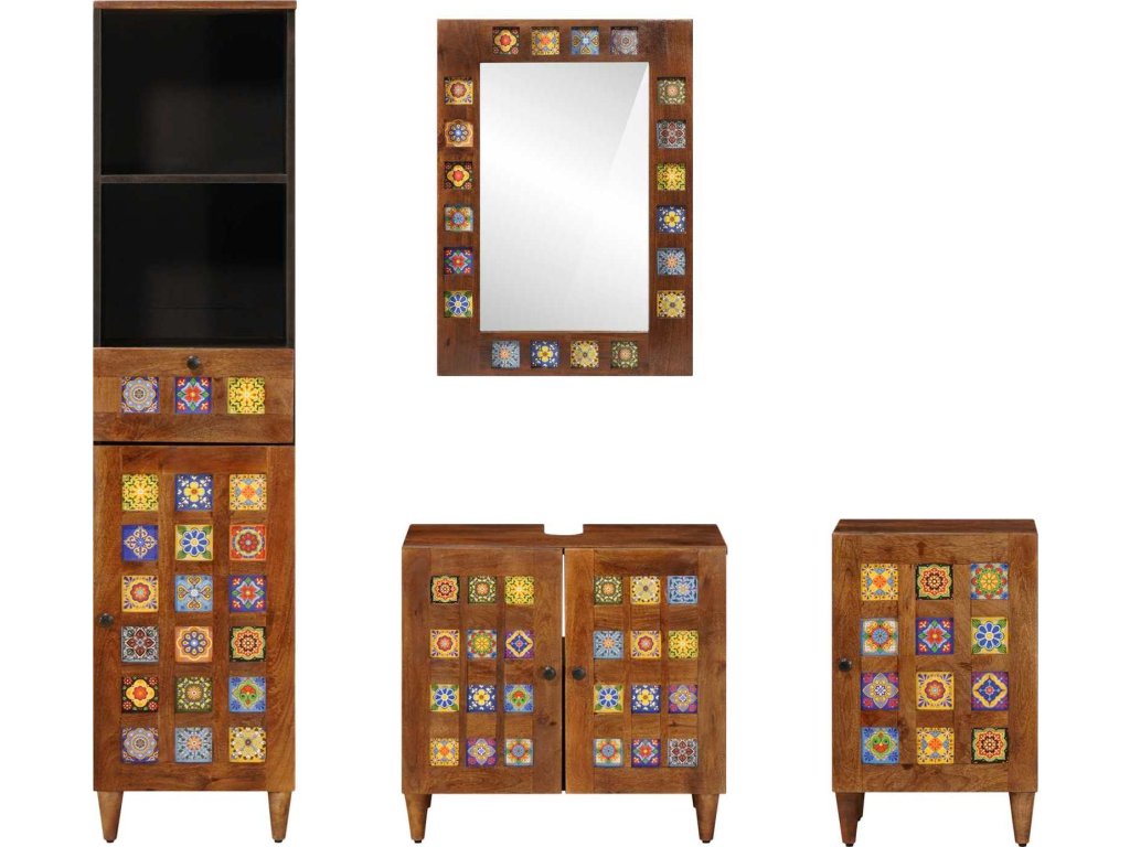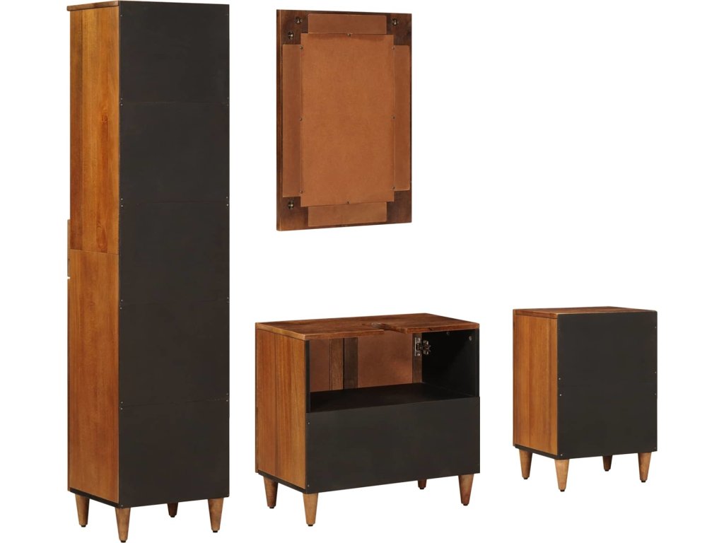 - Masivní mangovníkové dřevo: Koupelnový nábytek je převážně z masivního mangovníkového dřeva, známého svojí odolností a hezkým vzhledem. Tenhle materiál zajišťuje, že nábytek dlouho vydrží a odolává každodennímu opotřebení. Bohatá textura dodává vizuální přitažlivost a dělá tak, že si nábytek udrží svůj půvab v čase. Silné mangovníkové dřevo poskytuje spolehlivý základ pro všechny vaše koupelnové potřeby.