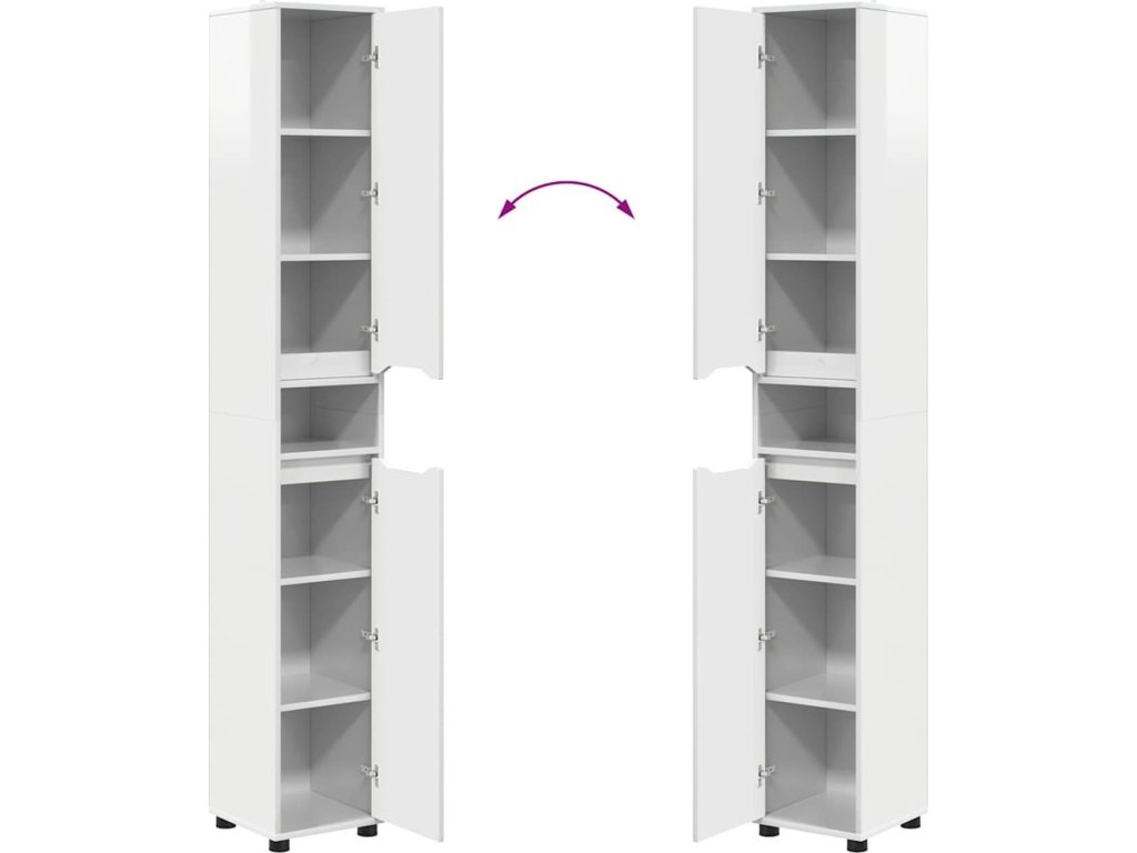Tahle moderní koupelnová sada je stylová a minimalistická, ideální pro dnešní domovy. Její rozměry 30,5 x 30 x 195 cm zajišťují, že se vejde do jakéhokoli prostoru koupelny a poskytne ti stylový i funkční zážitek. Perfektní pro ty, co hledají efektivní úložná řešení, sada obsahuje umyvadlovou skříňku, zrcadlovou skříňku a dvě koupelnové skříňky různých velikostí. Hladká textura a obdélníkový design dodávají čistý vzhled a zlepšují celkovou atmosféru.