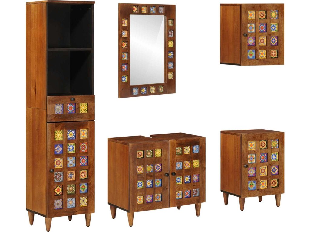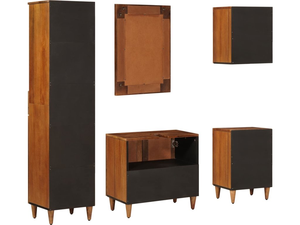 Tahle moderní koupelnová sestava je navržená tak, aby nabídla stylové a přehledné řešení pro ukládání v koupelně. Je vyrobená z kvalitního masivního mangovníkového dřeva, který upoutá pozornost svým minimalistickým designem a funkčností. Souprava skvěle padne do každé moderní koupelny a přináší klidnou a elegantní atmosféru s jednoduchými liniemi. Ta nejlepší volba pro zlepšení vzhledu koupelny a nabídku dostatku místa na všechny potřeby.
