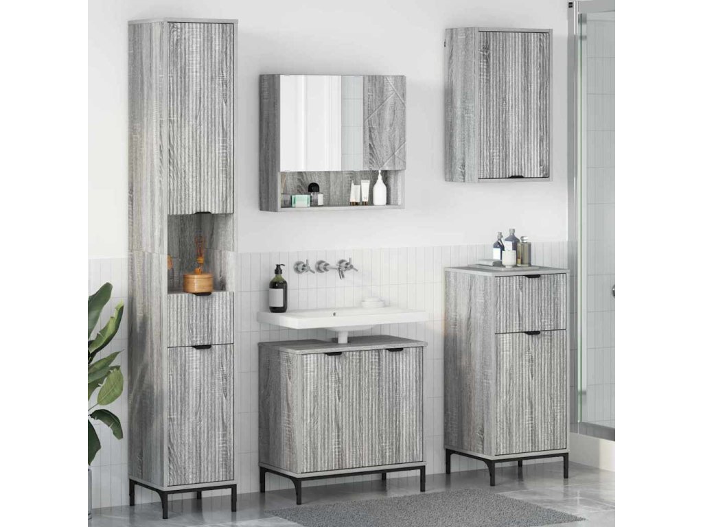 Sada koupelnového nábytku Šedá Sonoma Inženýrské dřevo, kov [3393119]