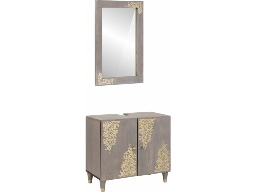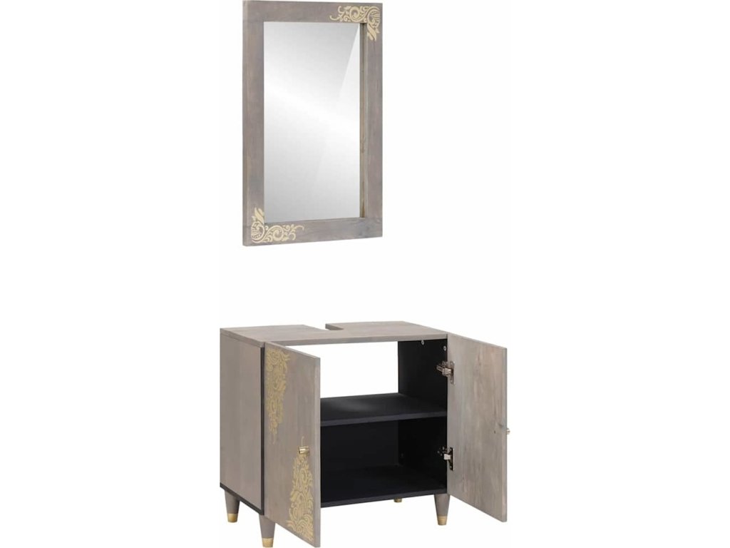 Sada koupelnových skříněk 2 pcs Šedá Masivní mangové dřevo [3310153]
