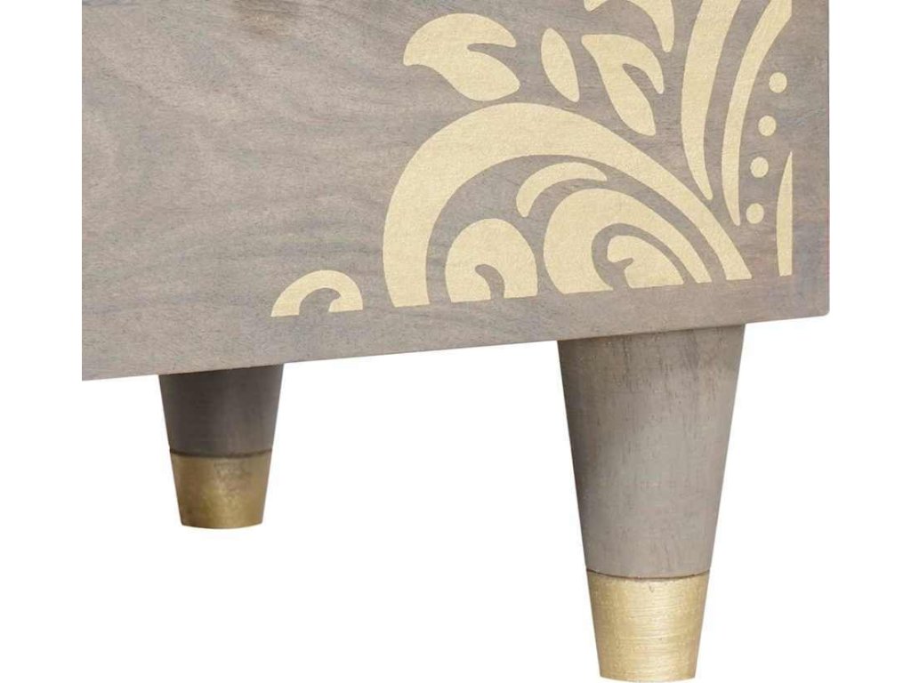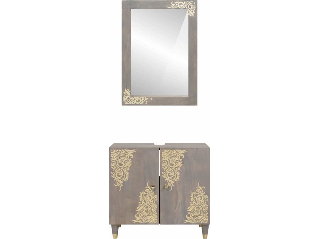 Tato rustikální koupelnová skříň spojuje styl s funkčností a přináší přírodní krásu přímo domů. Pečlivě vyrobená z masivního mangového dřeva je silná a vyznačuje se unikátní texturou. Elegantní zlatý sítotisk na dvířkách skříňky dodává umělecký šmrnc a stává se středobodem nejen ve rustikálních koupelnách. Je navržena tak, aby splnila vaše potřeby úložného prostoru a zároveň ladila s vaším dekorem.