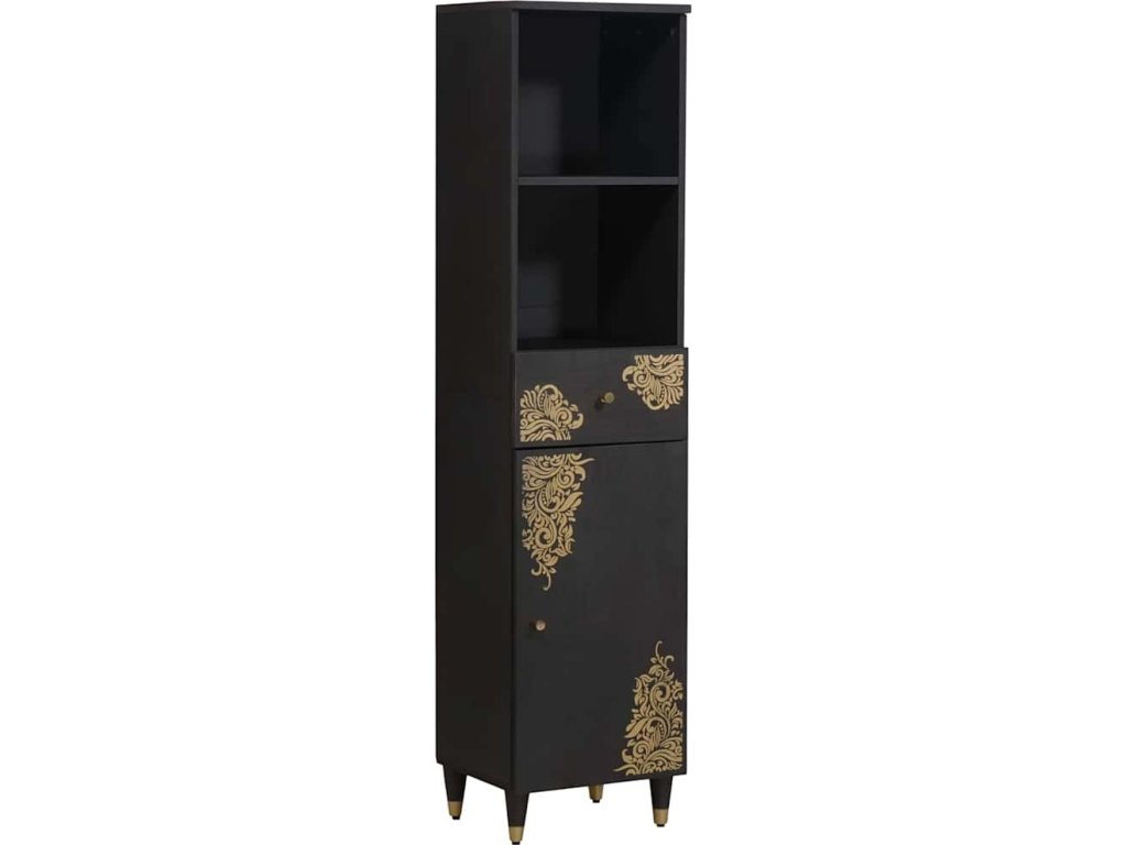 Tento Dřevěný koupelnový skříňkový set spojuje funkčnost s hezkým rustikálním designem, ideálním pro ty, co mají rádi krásné a praktické kousky v bytě. Vyroben z pevného mangového dřeva, tahle sada přináší přírodní tóny a dotek luxusu díky zlatému potisku. Je to univerzální výběr, který se hodí do různých stylů koupelen, zajišťuje potřebný úložný prostor a zlepšuje vzhled místnosti. Skvělá volba pro majitele, co chtějí mít pokoje uklizené a zároveň stylové.