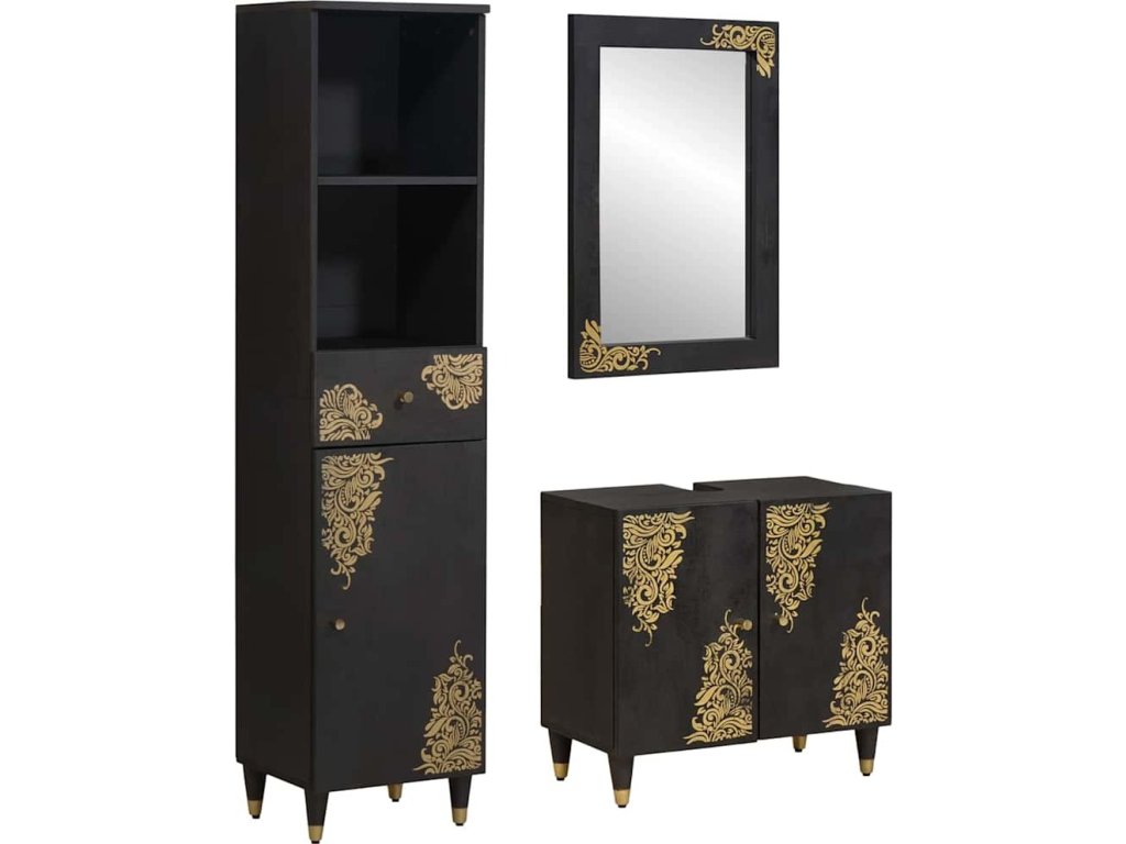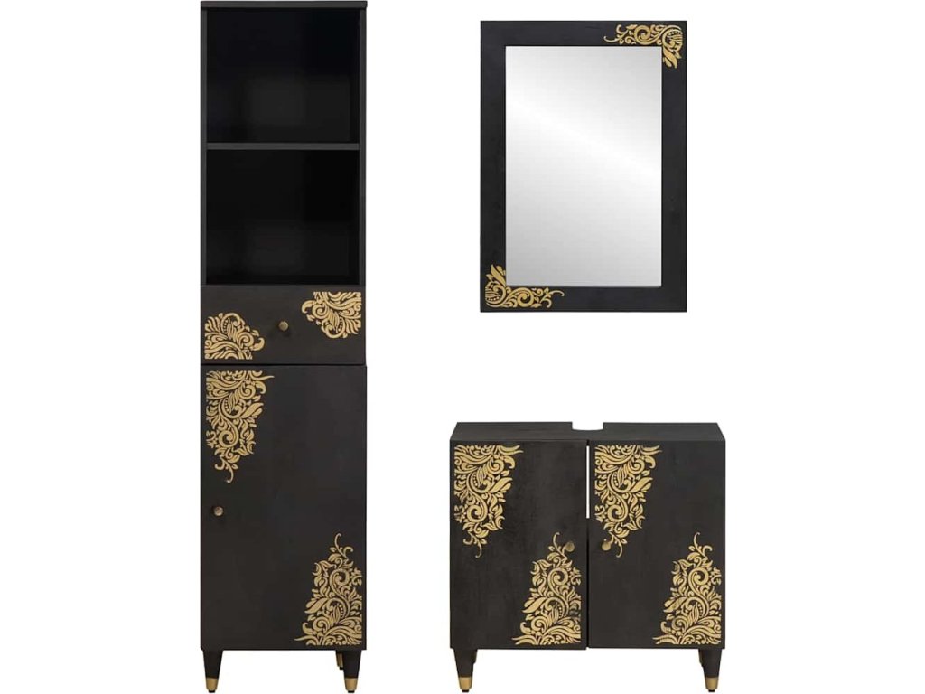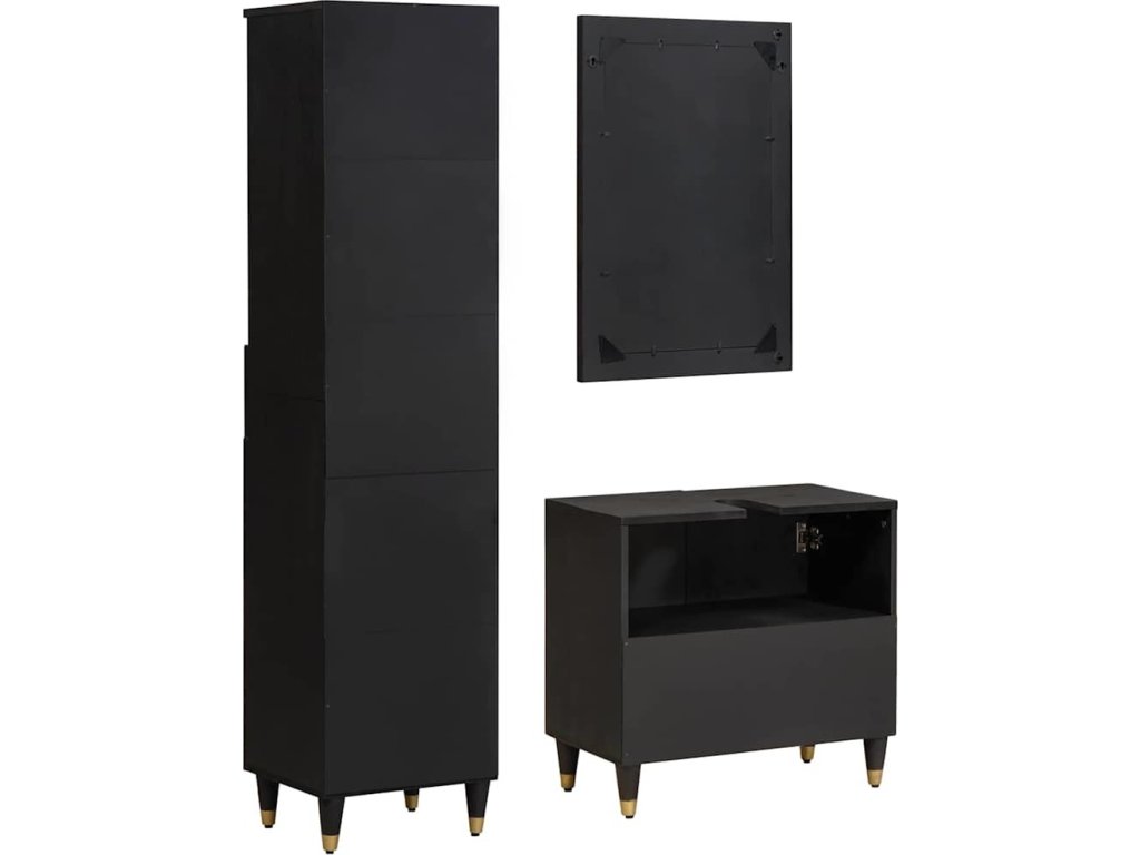 Sada koupelnových skříněk 3 pcs Černá Masivní mangové dřevo [3310160]