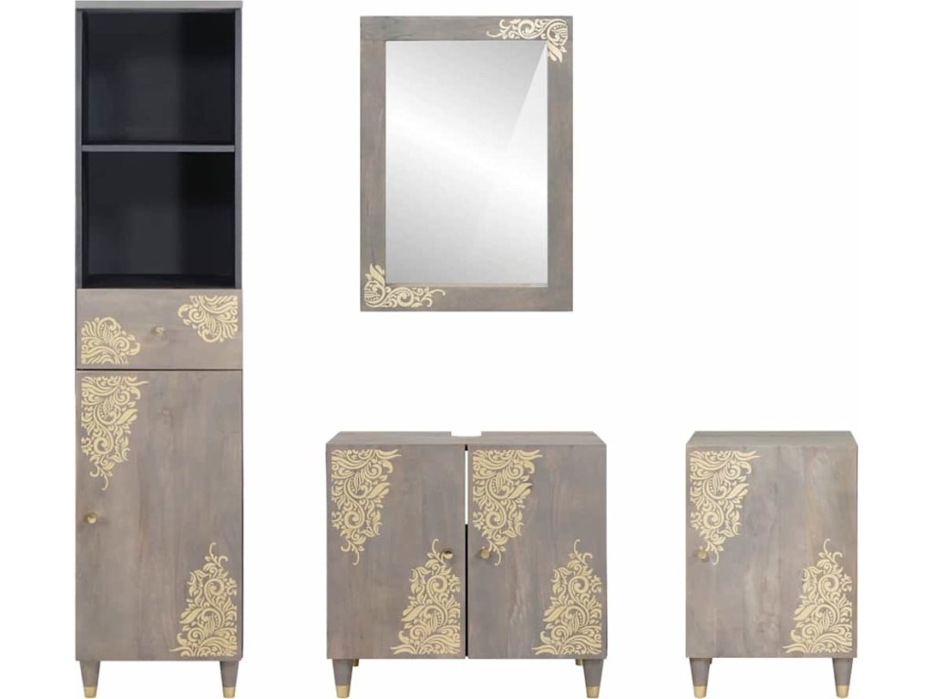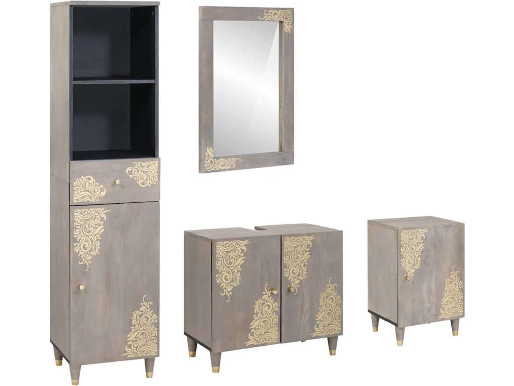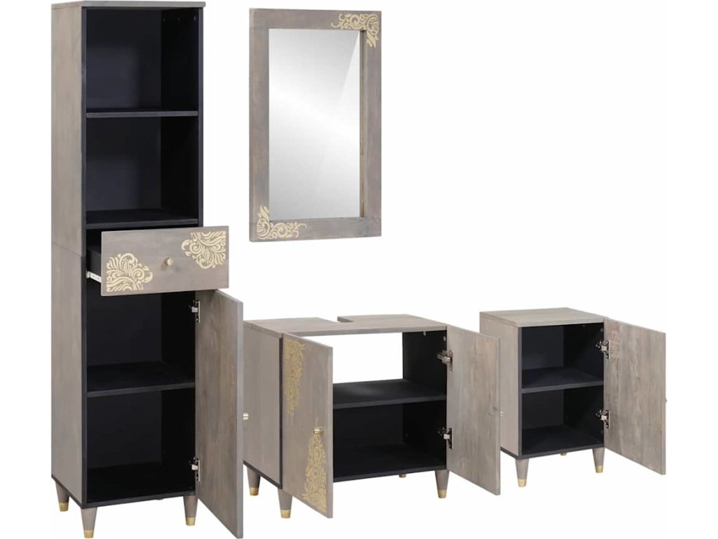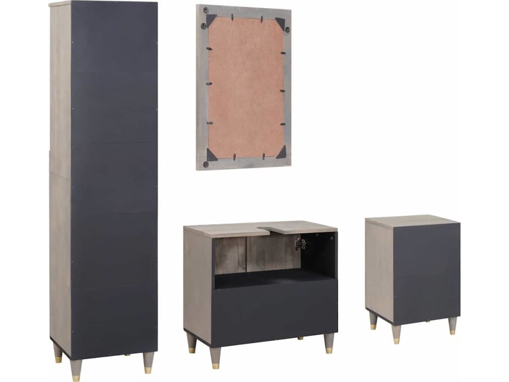 Sada koupelnových skříněk 4 pcs Šedá Masivní mangové dřevo [3310155]