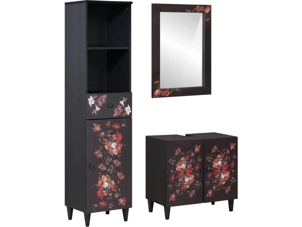 - Funkce / Použití / Design: Sada má parádní květinové vzory, které dodávají přírodní šmrnc a estetiku do koupelnového prostoru. Mosazné knoflíky dodají sofistikovanost a kontrast k dřevu, což vytváří nadčasový vzhled pro jakýkoli moderní interiér.