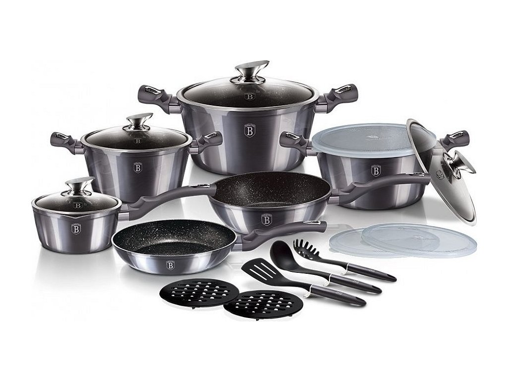 Sada nádobí Berlingerhaus s mramorovým povrchem 18 ks Carbon PRO Line BH-6887 [6340935]
