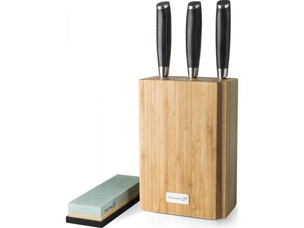 Sada nožů G21 Gourmet Damascus v bambusovém bloku 3 ks + brusný kámen [6002217]