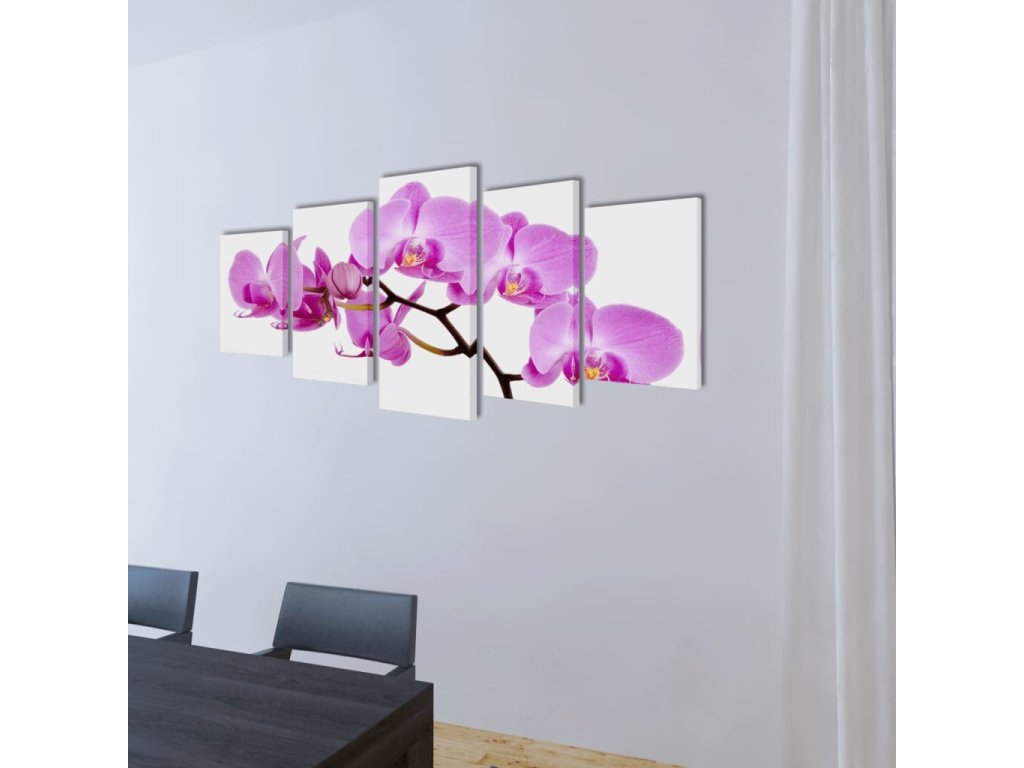 Tato sada tisků na plátně je vyrobená z vysoce kvalitního plátna, a je tak voděodolná, a tím pádem se i snadno čistí. Díky potisku s motivem orchideje má tato sada romantický charakter.
