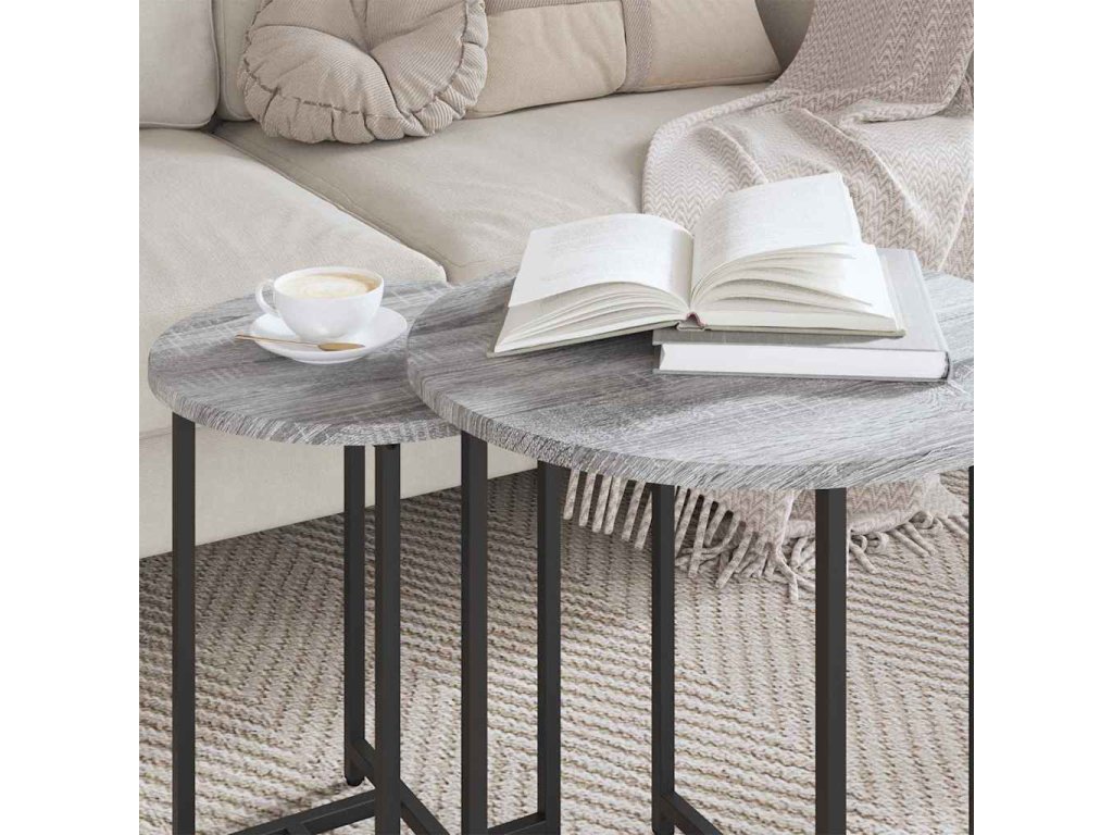 Sada odkládacích stolků 2 pcs Šedá Sonoma a černá [869699]