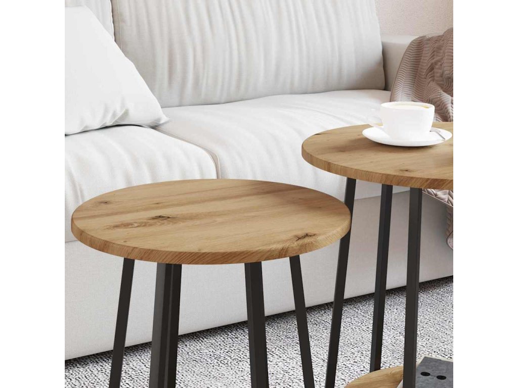 Tato hezká sada bočních stolů je trefou do černého pro jakýkoli moderní obývák, přináší kouzlo industriálního designu. Se svým kulatým tvarem a surovým městským šarmem, tato sada jednoduše obohatí vaš interiér a zároveň je super funkční. Skvělá pro aktivní domácnosti, tyto stoly nabízejí užitečné plochy pro lampy, nápoje nebo dekorace a hladce zapadnou do vašeho prostoru svou nenápadnou elegancí.