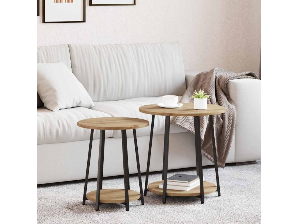 Sada odkládacích stolků s policí 2 pcs Artisan dub a černá [869707]
