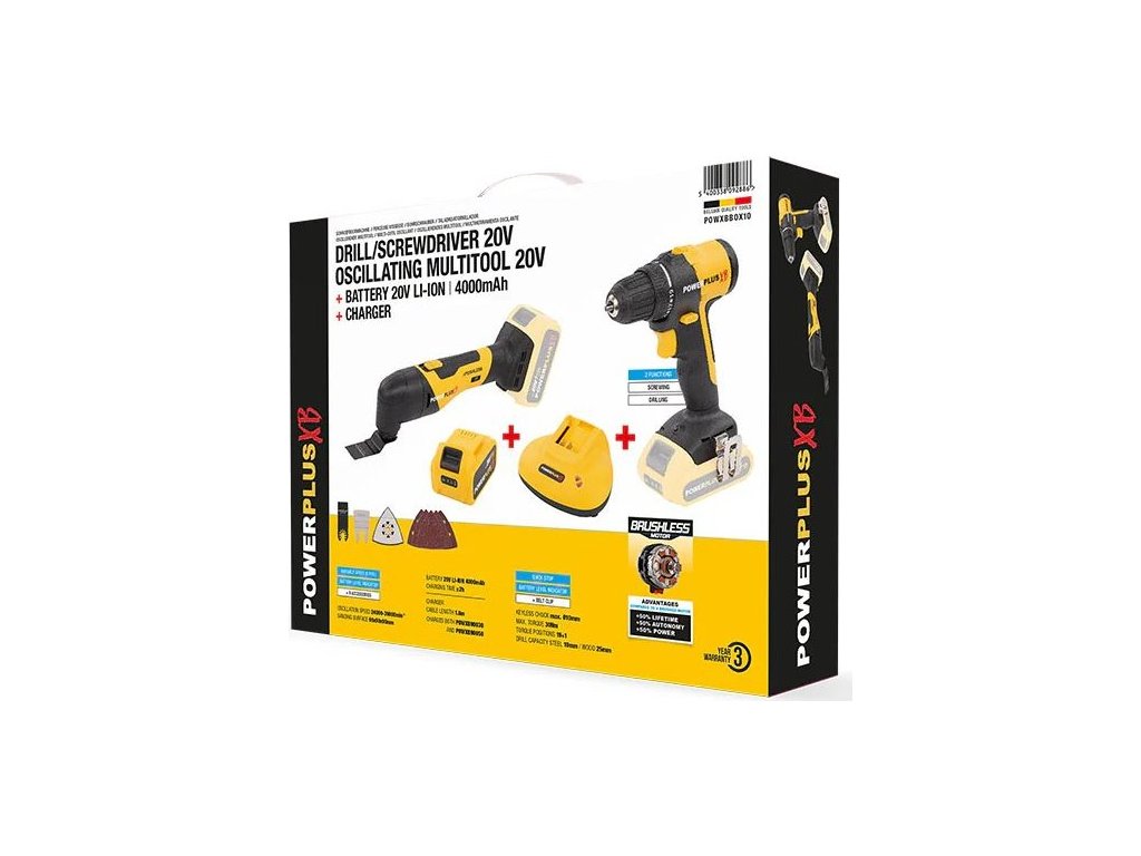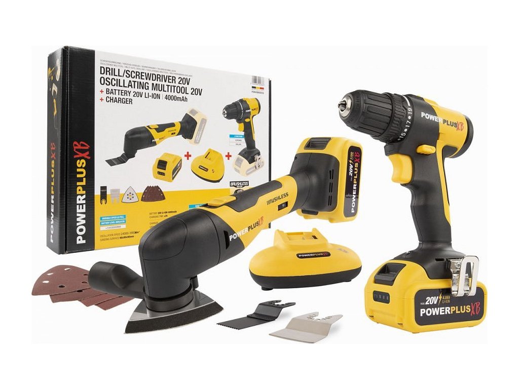 Sada Powerplus POWXBBOX10 - Aku vrtačka + multifunkční bruska 20 V, 4 Ah [63606027]
