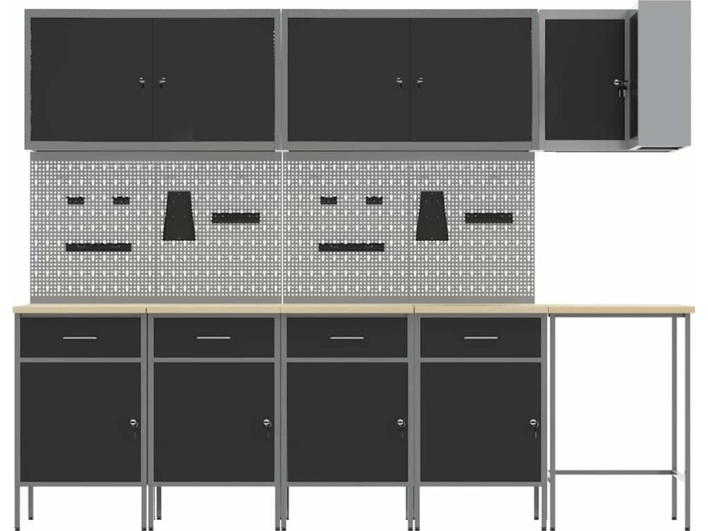 Sada pracovní skříně se zásuvkou s policí 12 pcs Černá a šedá [3321506]