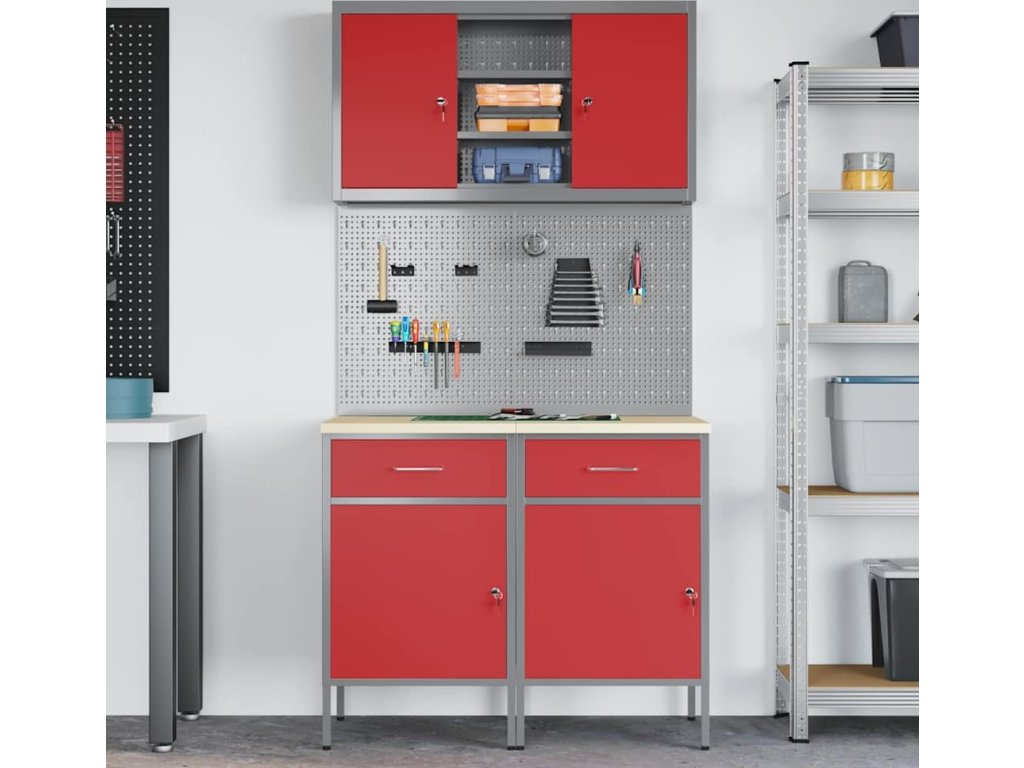 Sada pracovní skříně se zásuvkou s policí 6 pcs Červená [3321419]