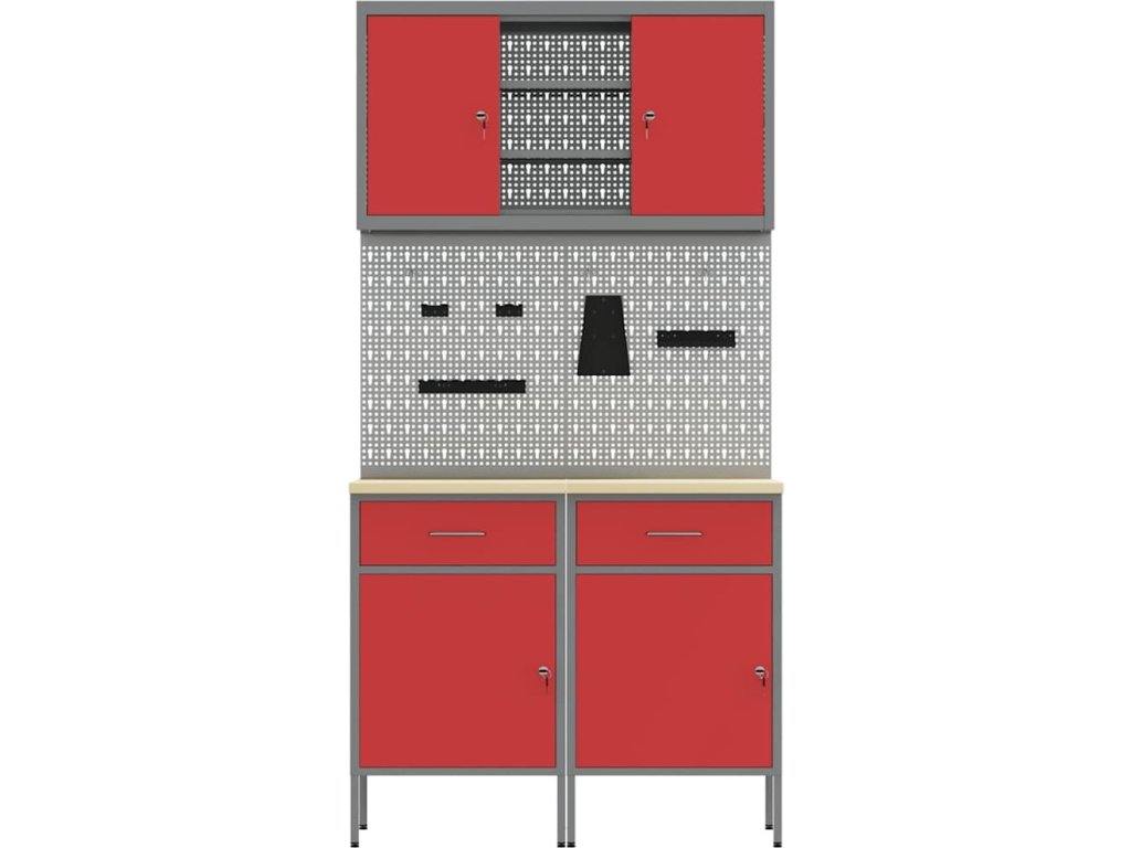 - Doporučené použití: Tenhle kabinetový systém se hodí pro dílny a zdravě vyhovuje jak kutily, tak profesionálům, kteří potřebují uložit nástroje, manuály a další věci přehledným způsobem.