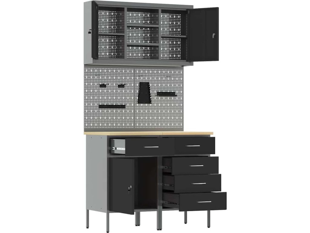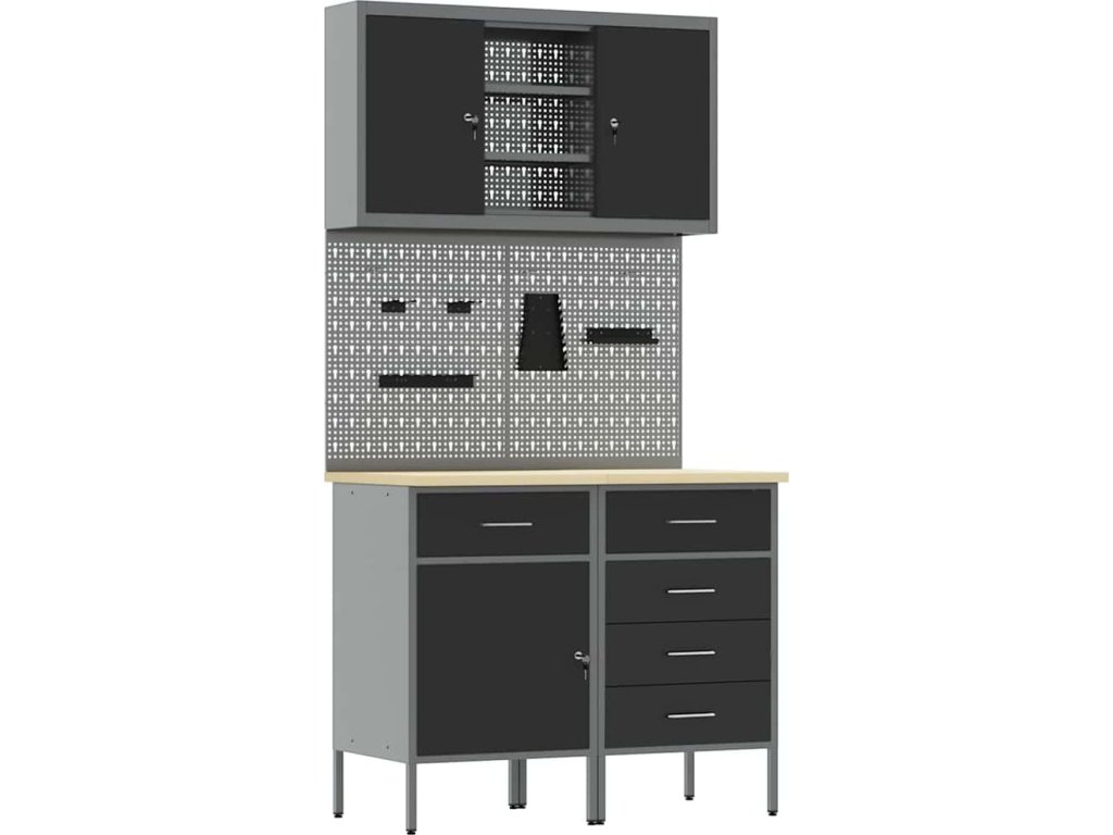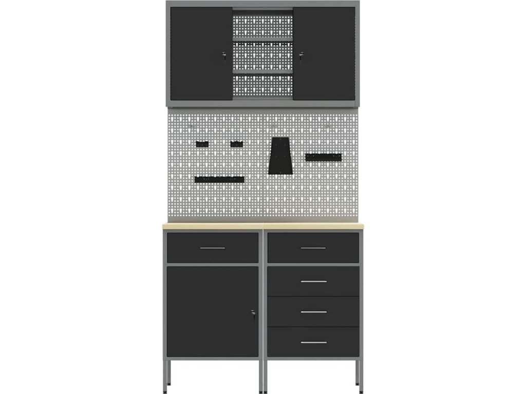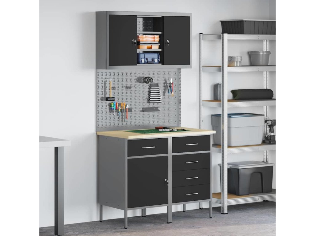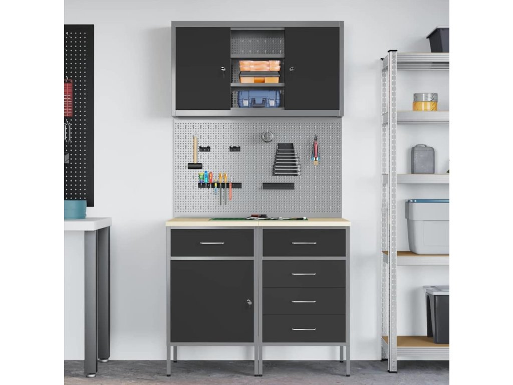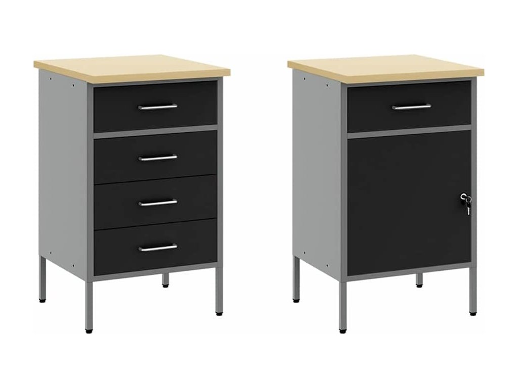 Sada pracovní skříně se zásuvkou s policí se zámkem 5 pcs Černá [3321426]