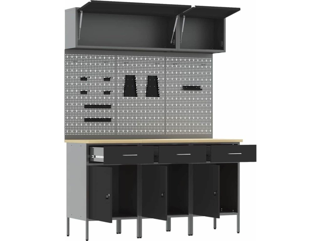 Sada pracovní skříně se zásuvkou s úložištěm 8 pcs Černá [3321432]