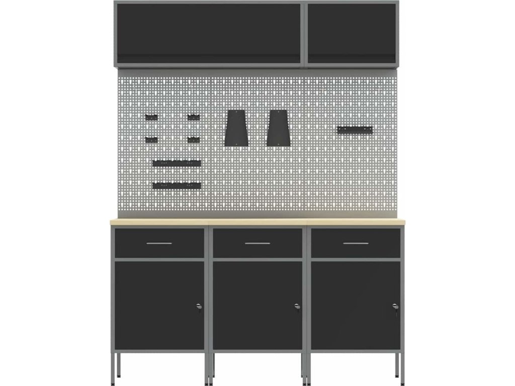 - Doporučené použití: Tenhle kabinetový systém se hodí pro dílny a zdravě vyhovuje jak kutily, tak profesionálům, kteří potřebují uložit nástroje, manuály a další věci přehledným způsobem.