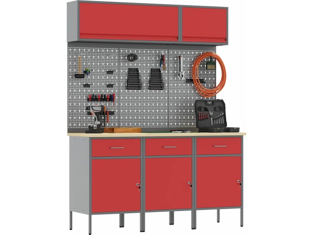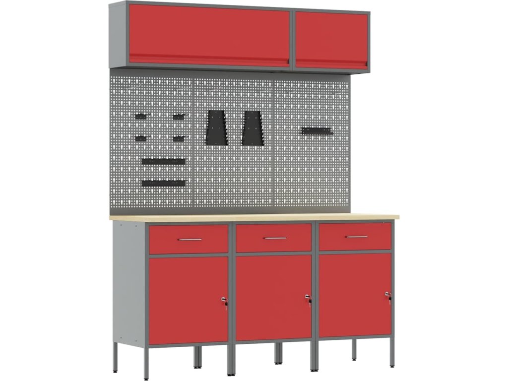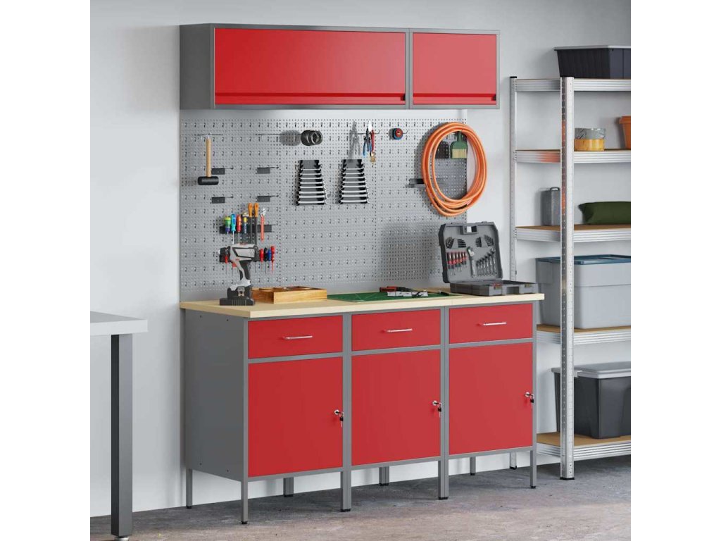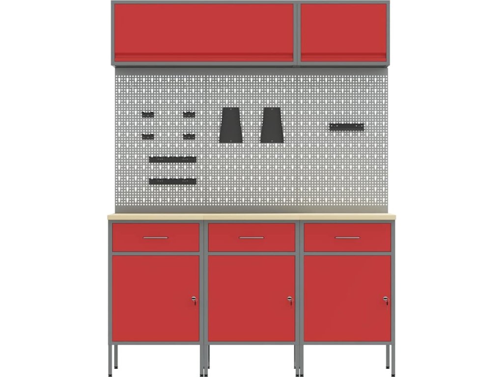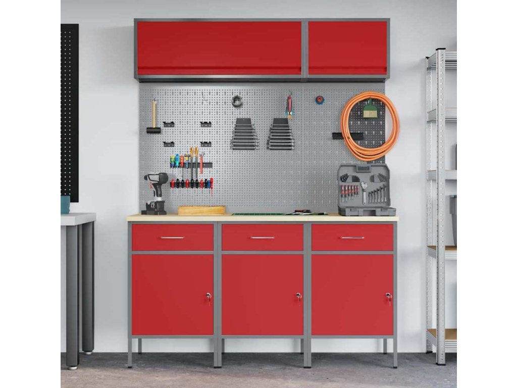 Sada pracovní skříně se zásuvkou s úložištěm 8 pcs Červená [3321433]
