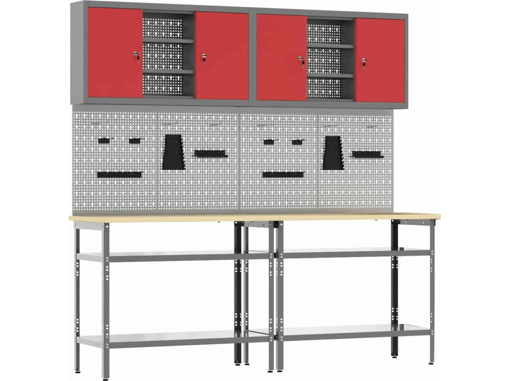 Tato sada pracovních stolů z oceli je ideální kombinací funkčnosti a průmyslového stylu pro profesionální dílny i domácí garáže. Obdélníkový stůl zvládne i těžší úkoly a má moderní design. Díky hladkému povrchu se bezproblémově hodí do jakéhokoliv prostoru. Kovové police poskytují dost úložného místa, takže máte nářadí a potřeby pěkně srovnané a přehledné. Představte si tento stůl jako středobod vašeho pracovního místa, který dodává atmosféru profesionality, pořádku a stylu.