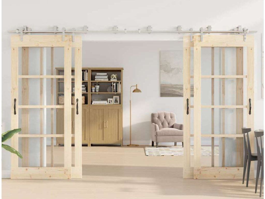 - Ideální pro dvojitá stodolová vrata: V případě omezeného prostoru na stěně umožňuje sada obchozího držáku stodolových dveří nezávislé posouvání dvou stodolových dveří po dvou kolejnicích bez nutnosti dalšího volného prostoru.