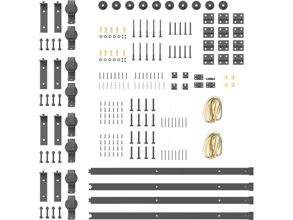 - Součástí dodávky je pouze sada kování pro posuvné dveře. Dveře nejsou součástí dodávky.