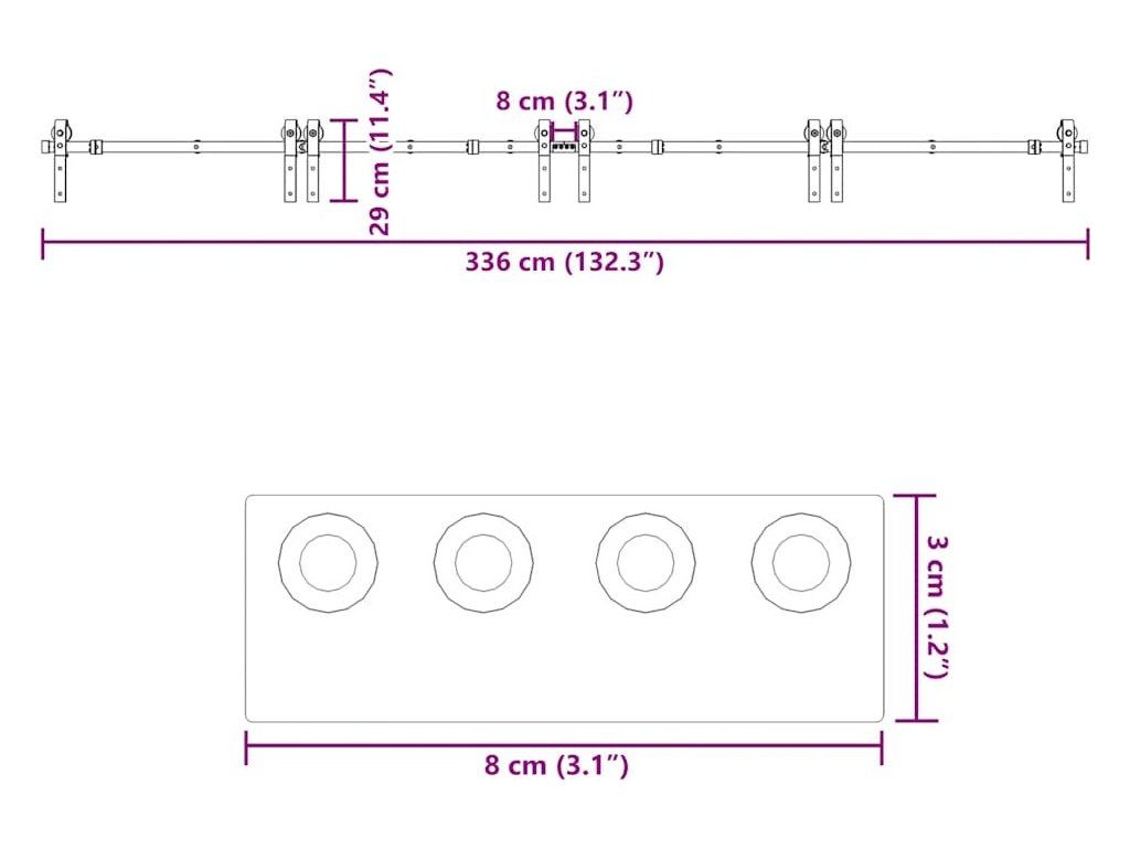 Tato sada kování pro posuvné dveře je ideální pro prodloužení délky kolejnic vašich plochých posuvných dveří!