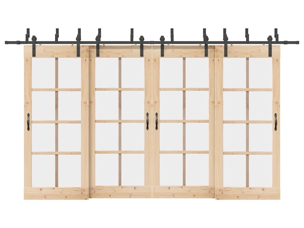 Pomocí této sady kování pro posuvné dveře můžete snadno nastavit dvě kolejnice pro dvojici dveří, které se budou posouvat před sebou a za sebou.