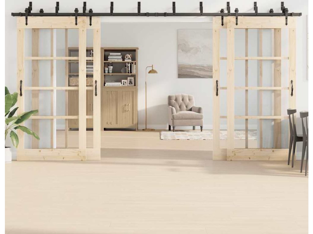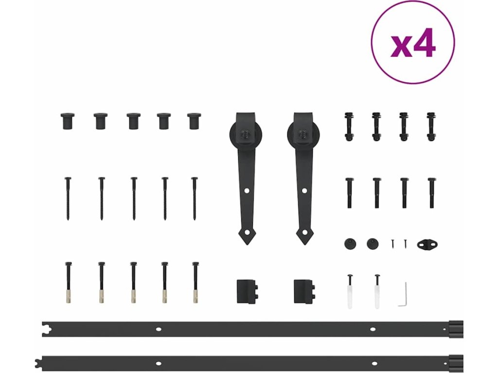 - Součástí dodávky je pouze sada kování pro posuvné dveře. Dveře nejsou součástí dodávky.
