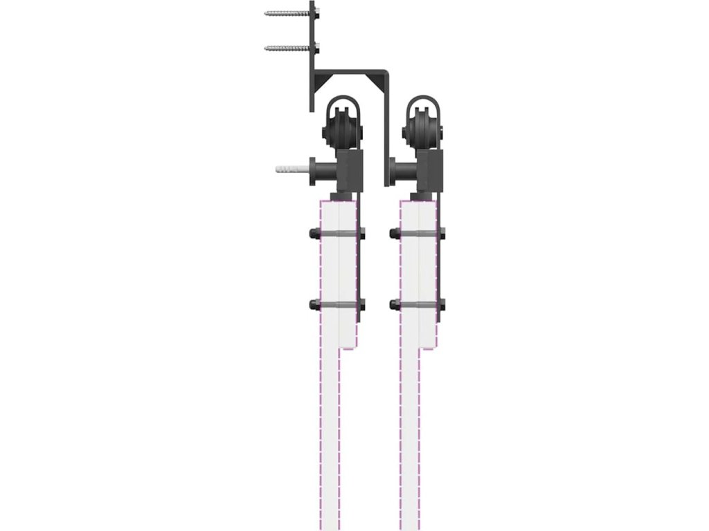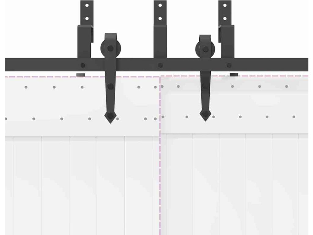 - Ideální pro dvojitá stodolová vrata: V případě omezeného prostoru na stěně umožňuje sada obchozího držáku stodolových dveří nezávislé posouvání dvou stodolových dveří po dvou kolejnicích bez nutnosti dalšího volného prostoru.