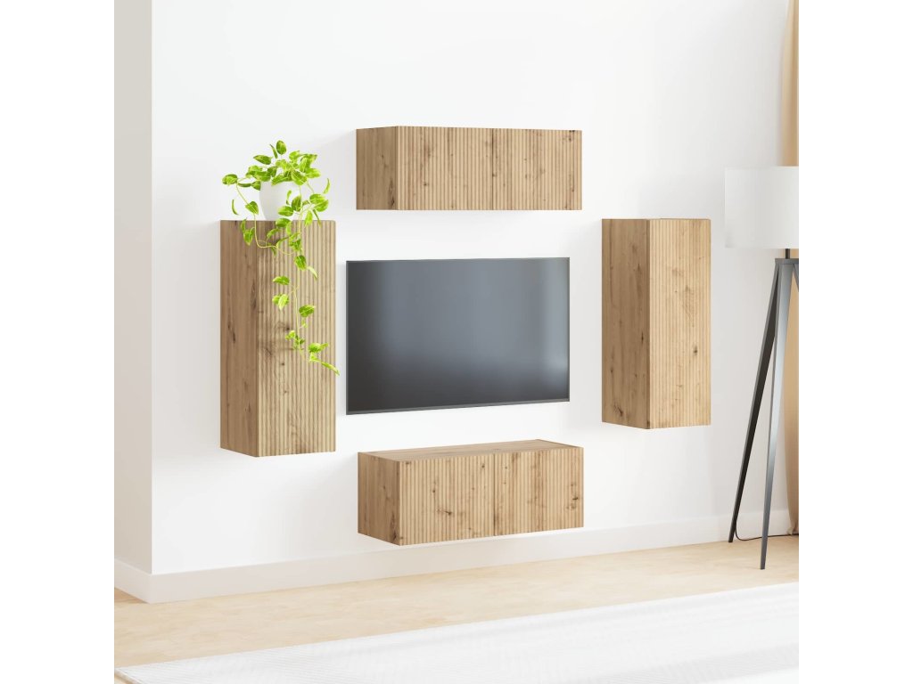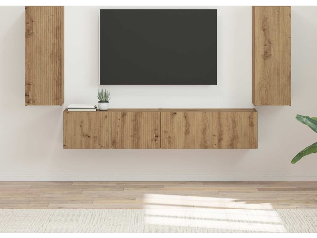 Sada televizního nástěnného kabinetu 4 pcs Artisanový dub [3408924]