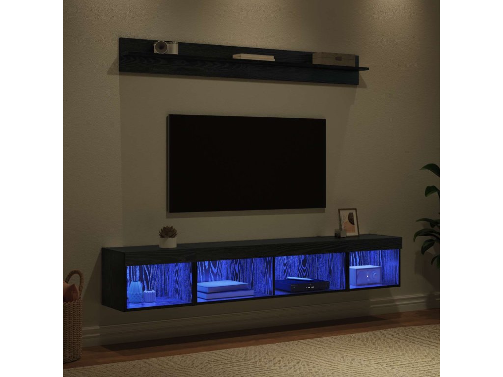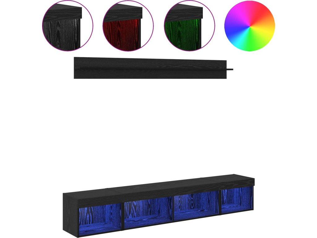 Sada televizního nástěnného kabinetu s LED 5 pcs Černý dub [3402954]