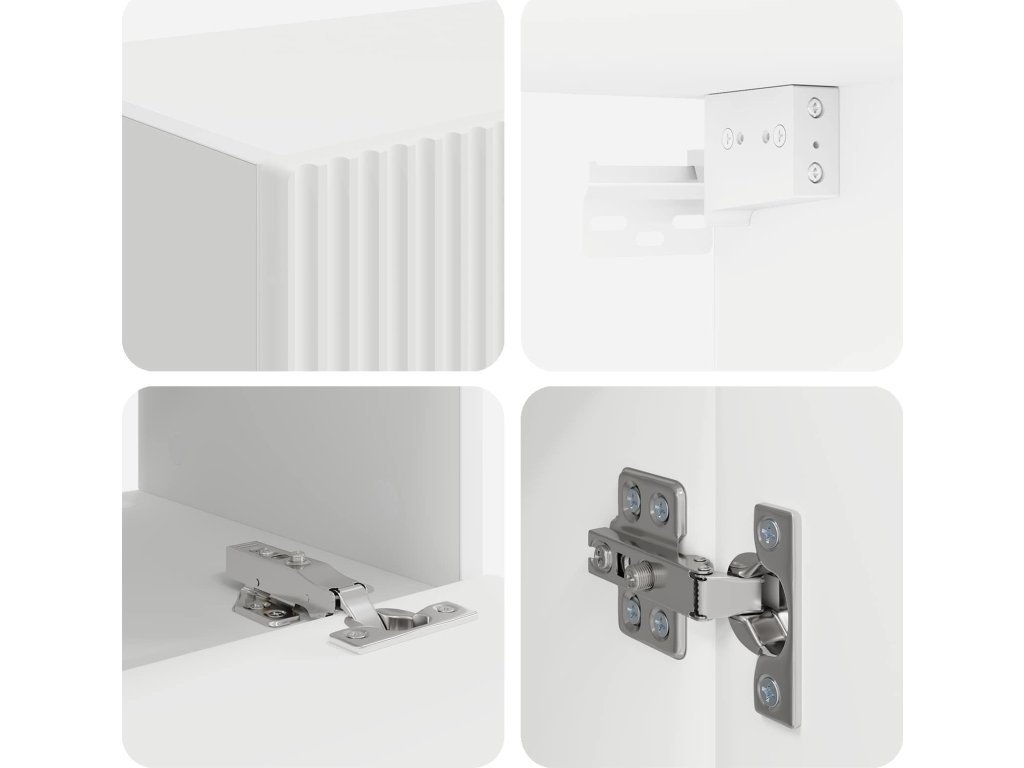- Funkční dveře s 90° panty: Otvírají se snadno a poskytují bezproblémový přístup k ukládaným věcem, což je super praktické, aby to vypadalo úhledně.