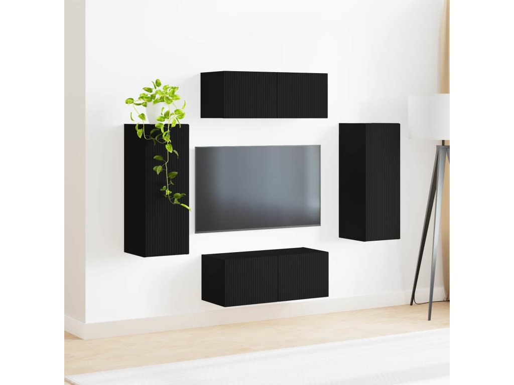 Sada televizního nástěnného kabinetu Nástěnný 4 pcs Černá [3408917]