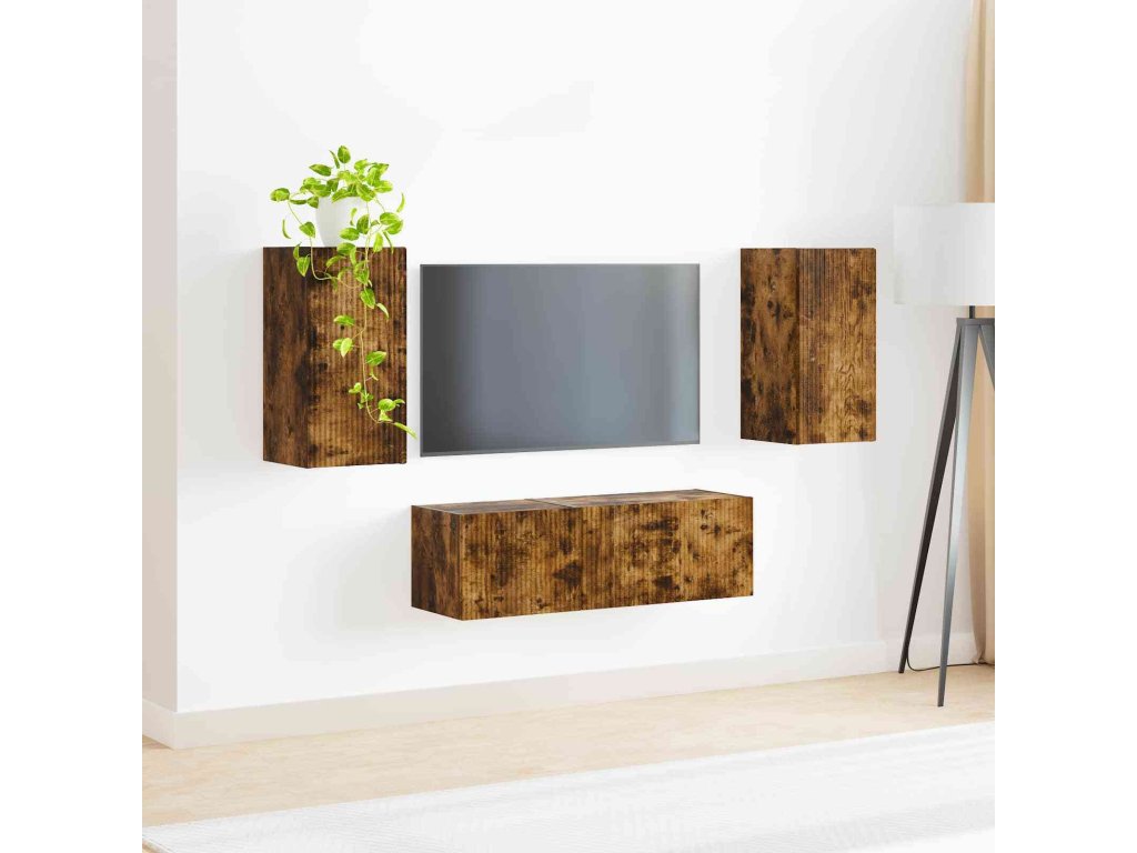 Sada televizního nástěnného kabinetu Nástěnný 4 pcs Kouřový dub [3408912]