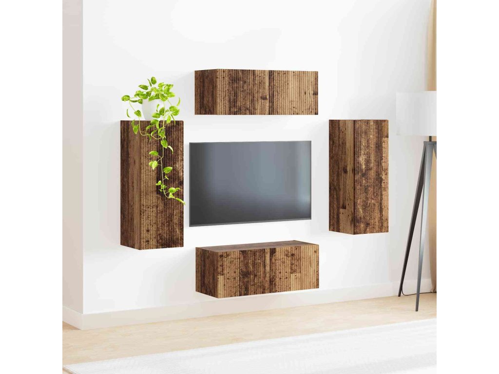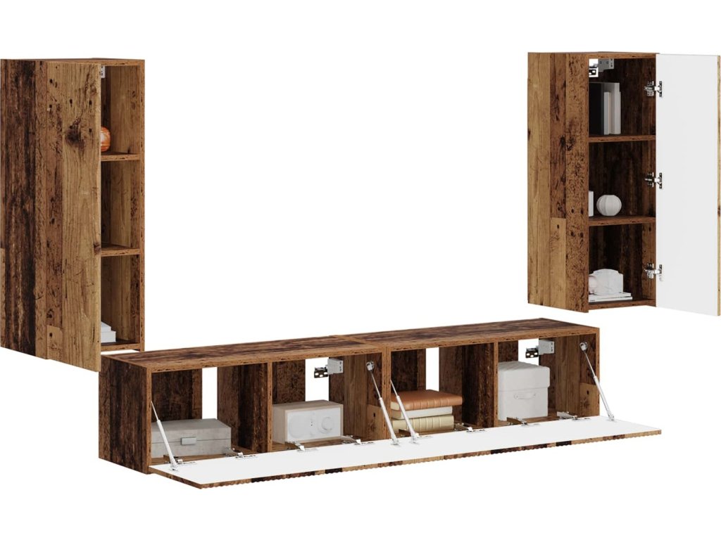 Sada televizního nástěnného kabinetu Nástěnný 4 pcs Staré dřevo [3408923]
